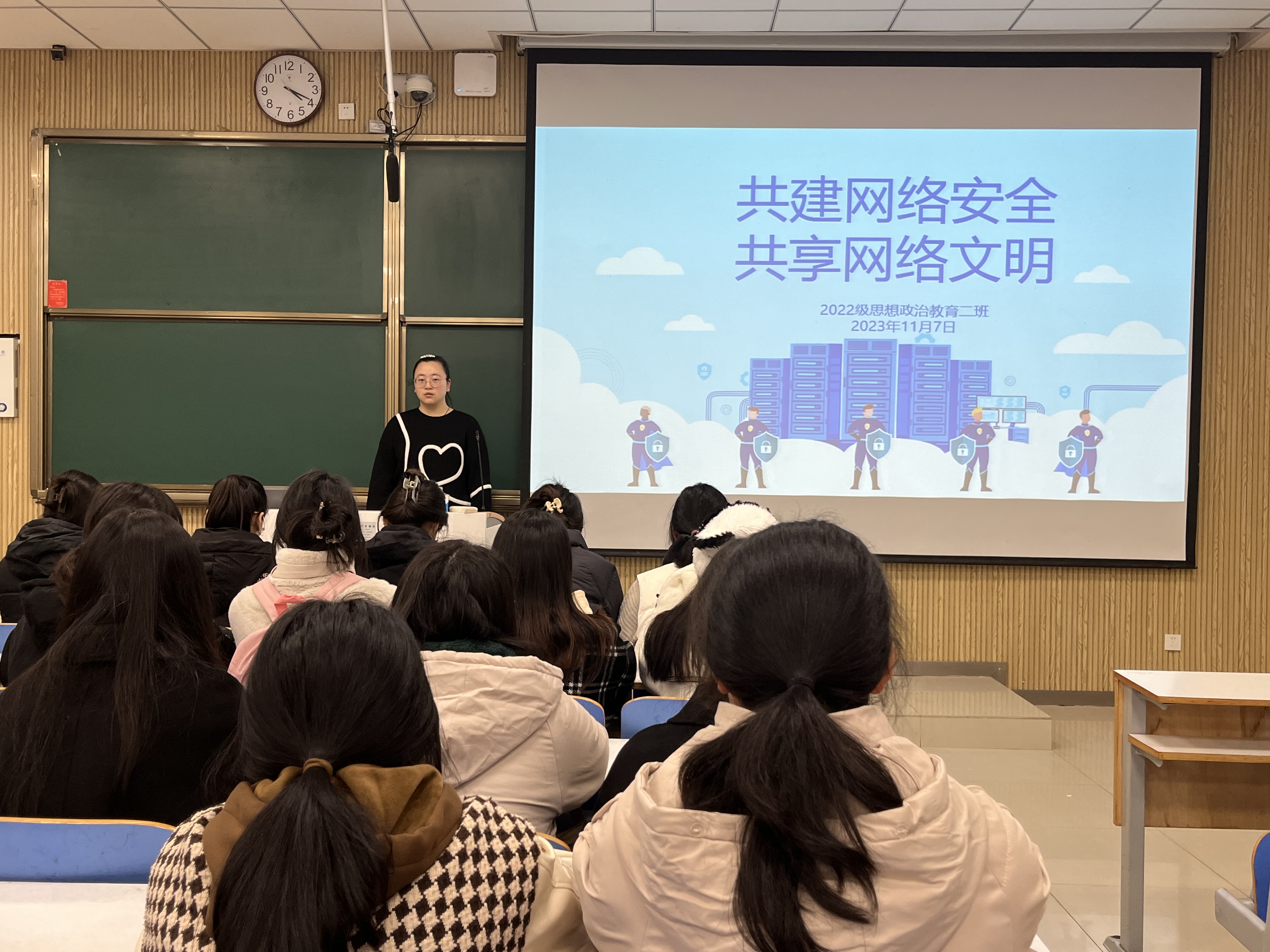 11月7日下午,beat365在线唯一官网2022级思想政治教育二班在社科楼515教室开展“共建网络安全,共享网络文明”主题团日活动。beat3652022级思想政治教育二班全体成员共同参与此次团日活动。活动由团支书李佳音主持。