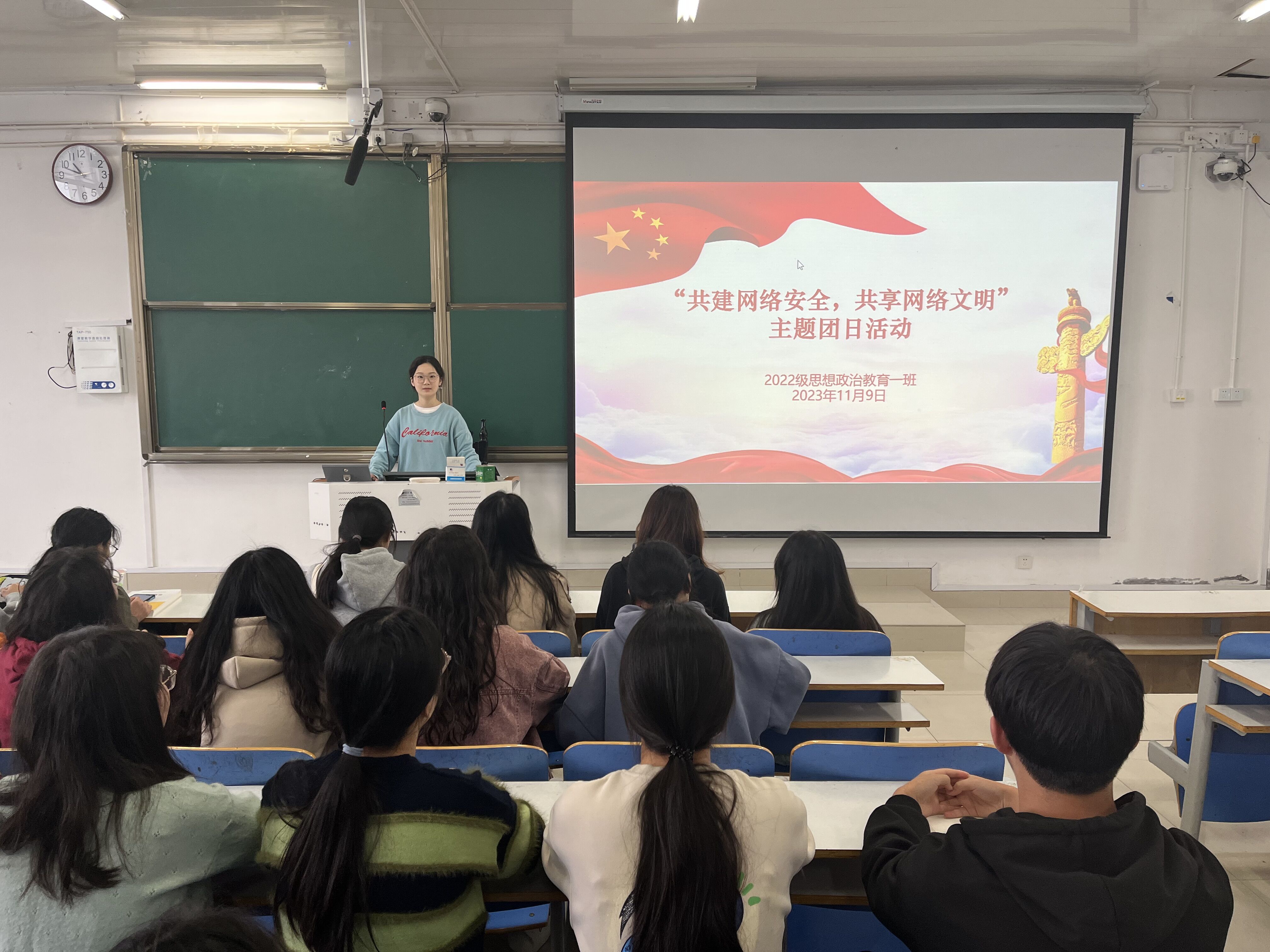 为做好网络安全宣传工作,提升同学们的网络安全意识,11月9日上午,beat365在线唯一官网2022级思想政治教育一班在社科楼514教室开展“共建网络安全,共享网络文明”主题团日活动。beat3652022级思想政治教育一班全体同学共同参与本次活动,活动由团支书李佳茹主持。