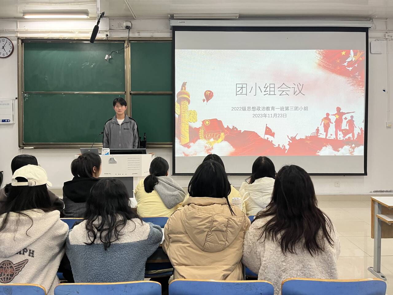 11月23日下午,beat365在线唯一官网2022级思想政治教育一班在社科楼514教室召开“发扬奋斗精神,展现青春担当”团小组会议,beat3652022级思想政治教育一班第三团小组成员共同参与本次会议,会议由第三团小组组长闻炎仲主持。