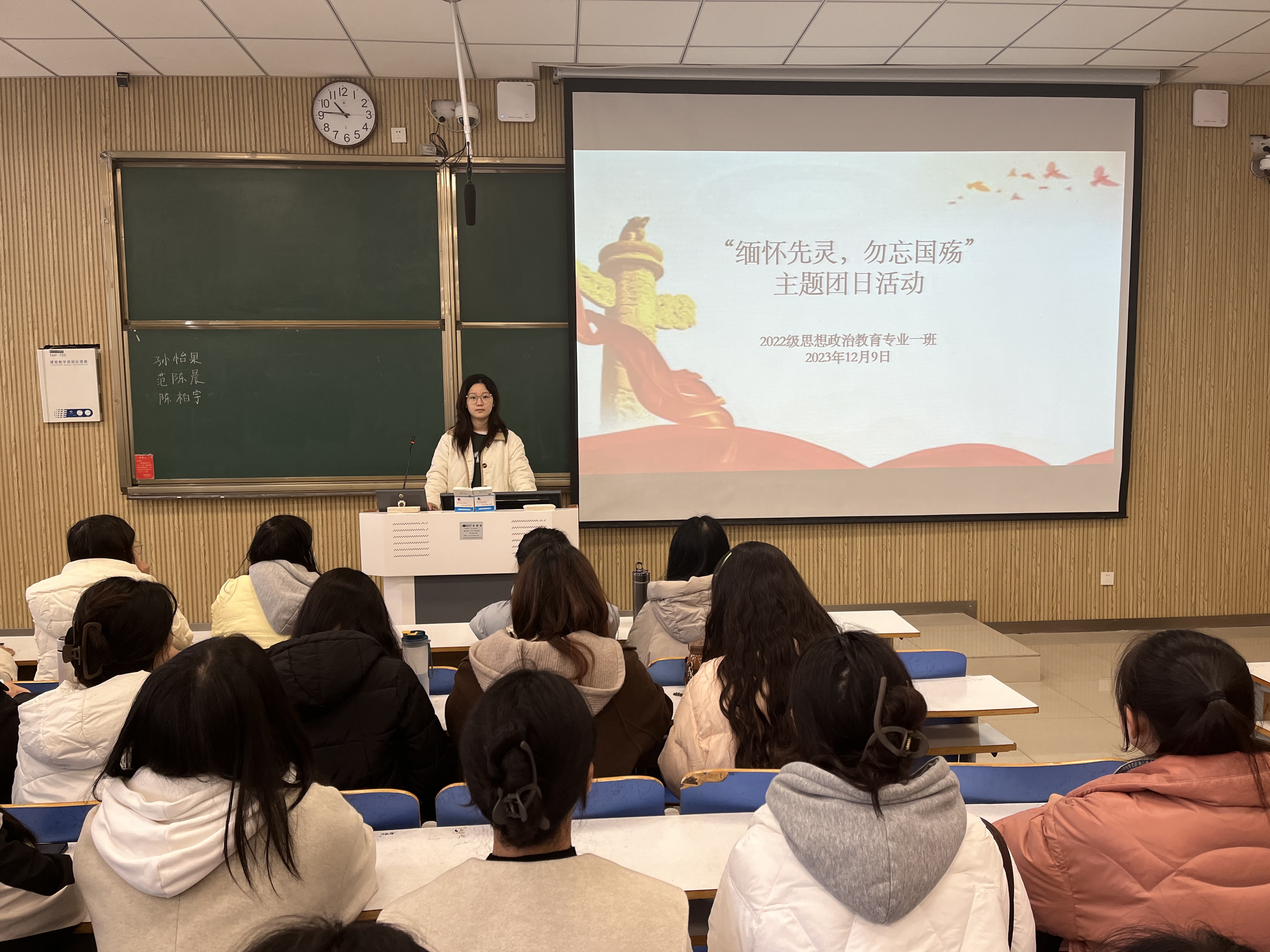 为推动同学们铭记历史,激发爱国热情,12月9日上午,beat365在线唯一官网2022级思想政治教育一班在社科楼515教室召开“缅怀先灵,勿忘国殇”主题团课。beat3652022级思想政治教育一班全体同学共同参与本次团课,团课由团支书李佳茹主持。