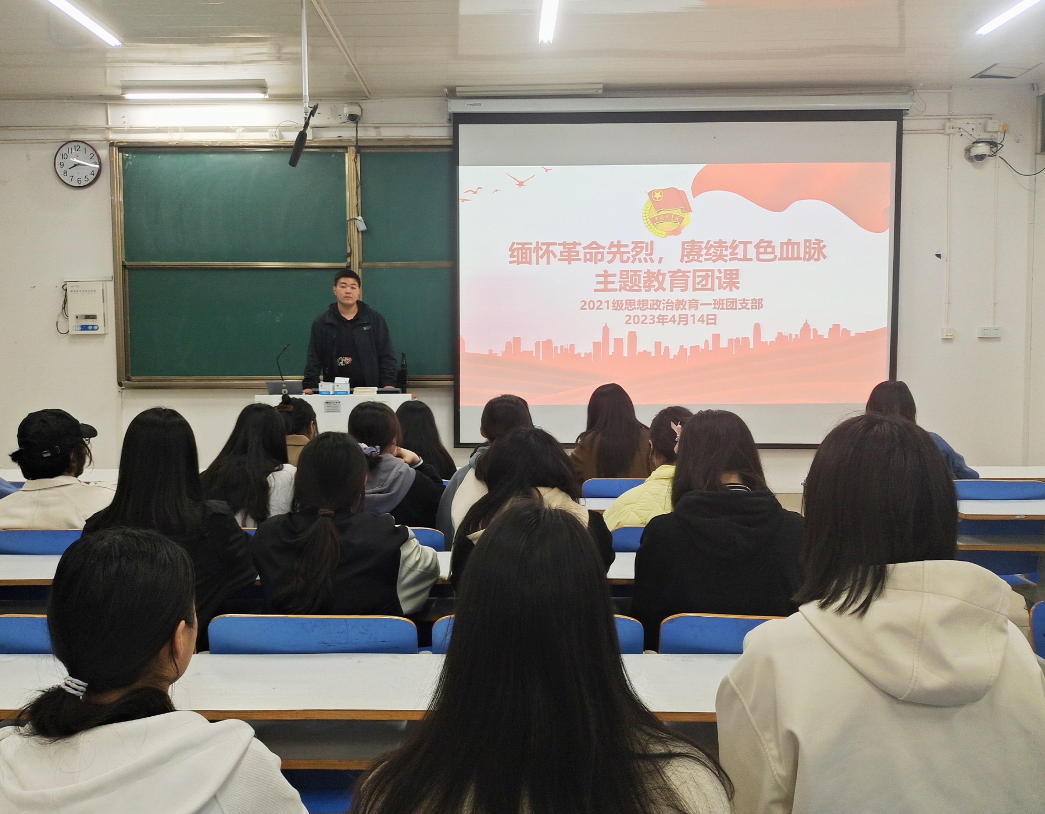 为缅怀革命先烈,加强对大学生爱国主义教育、革命传统教育和传统美德教育,强化大学生思想道德建设,4月14日晚上,beat365在线唯一官网2021级思想政治教育一班在社科楼514教室召开“缅怀革命先烈,赓续红色血脉”主题教育团课。2021级思想政治教育一班全体团员共同参加了本次团课。团课由团支书戴翰林主持。
