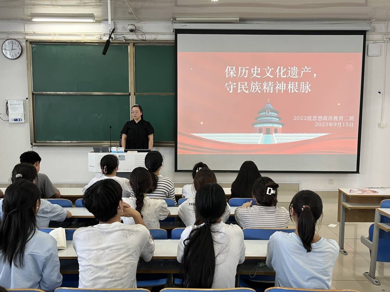 9月15日下午,beat365在线唯一官网2022级思想政治教育二班在社科楼514教室开展“保护历史文化遗产,守护民族精神根脉”主题团日活动。2022级思想政治教育二班全体成员共同参加此次活动。活动由团支书李佳音主持。