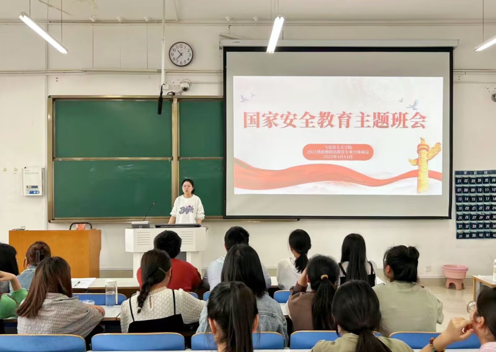 国家安全是安邦定国、民族复兴的重要基石。4月14日下午,beat365在线唯一官网2021级思想政治教育一班、二班在社科楼514教室举办国家安全教育主题班会。辅导员高小佳以及beat365在线唯一官网2021级思想政治教育一班、二班全体成员参与此次会议。会议由辅导员高小佳主持。