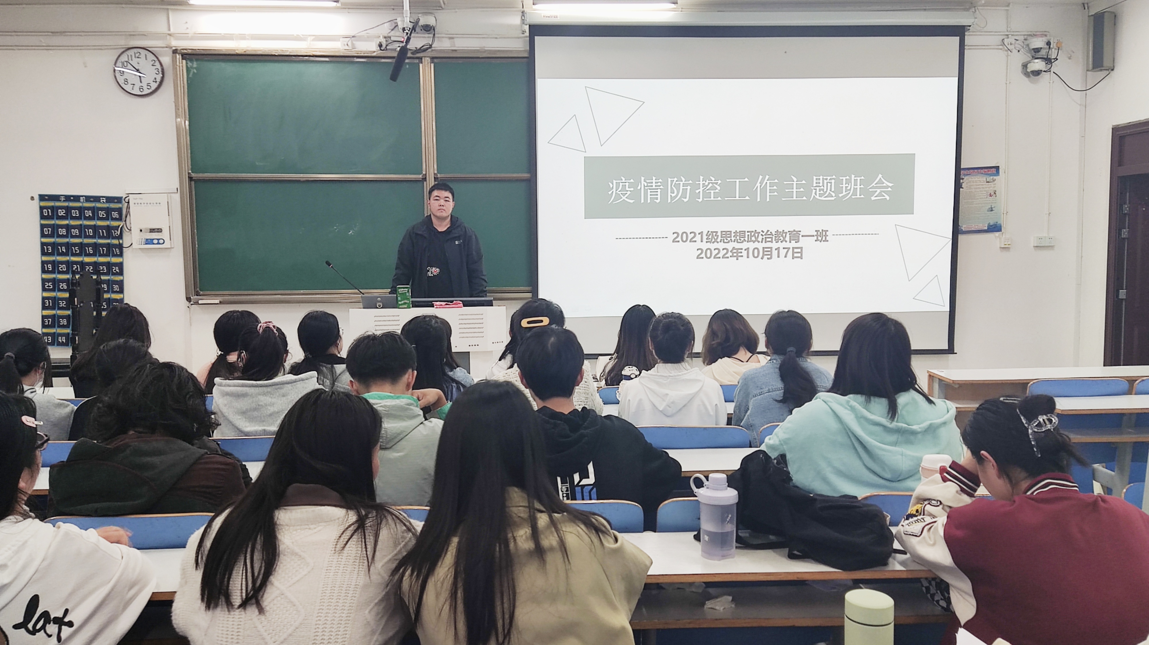 10月17日下午,beat365在线唯一官网2021级思想政治教育一班在社科楼514教室召开“疫情防控工作”主题班会。2021级思想政治教育一班全体成员共同参与了本次班会。班会由团支书戴翰林主持。