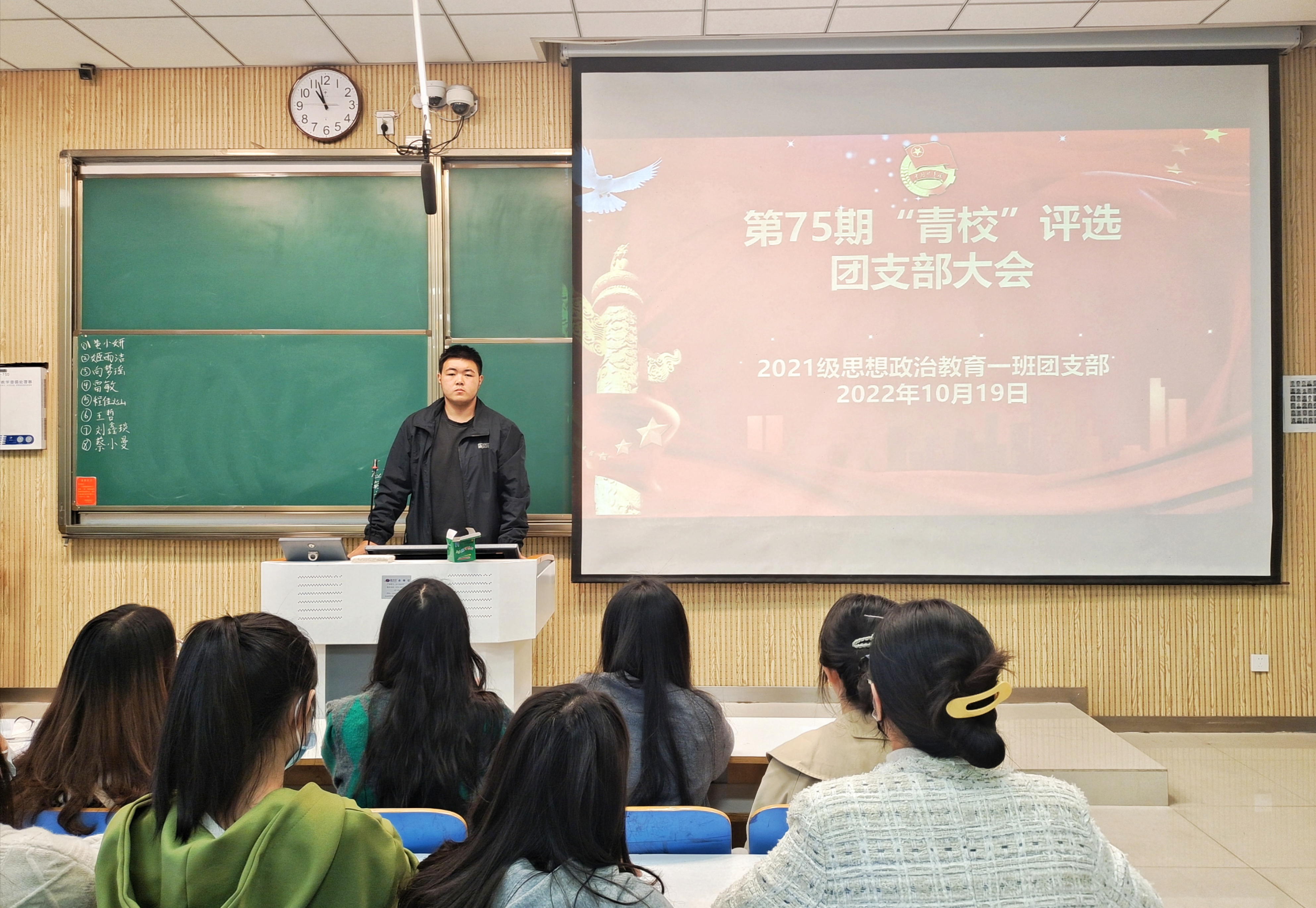 10月19日下午,beat365在线唯一官网2021级思想政治教育一班在社科楼515教室召开第75期“青校”评选团支部大会。2021级思想政治教育一班全体团员共同参加了本次会议。会议由团支书戴翰林主持。