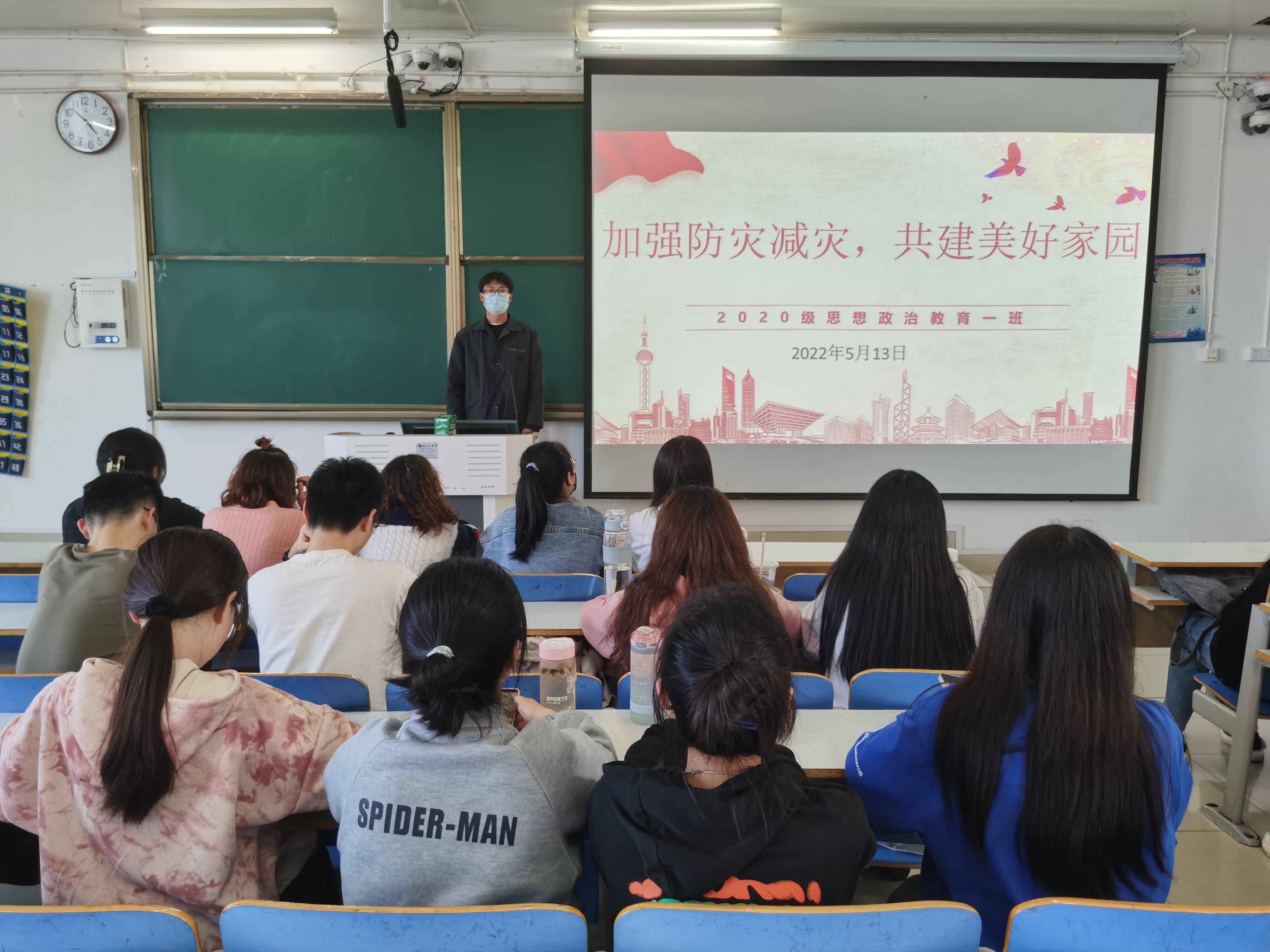 5月13日上午,beat365在线唯一官网2020级思想政治教育一班在社科楼514召开了“加强防灾减灾,共建美好家园”的主题班会。2020级思想政治教育一班全体同学共同参加本次班会,班会由副班长白帅豪主持。