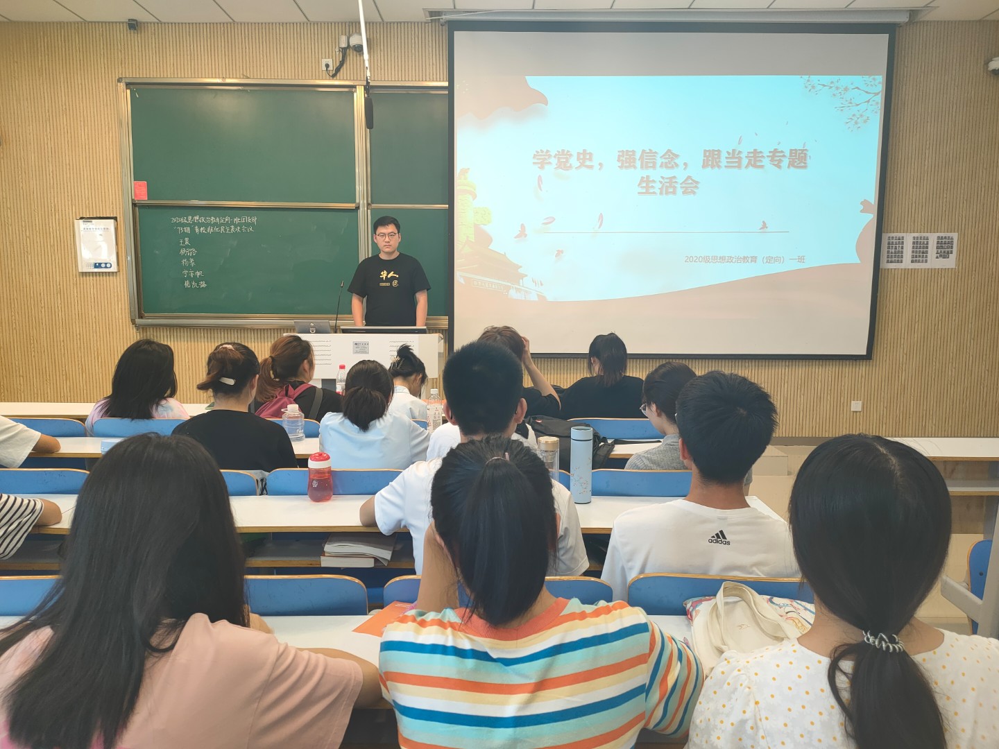 10月4日上午,beat365在线唯一官网2020级思想政治教育(定向)一班在社科楼515教室顺利举办“学党史,强信念,跟党走”主题班会。beat365在线唯一官网思想政治(定向)一班全体学生参加了此次班会。