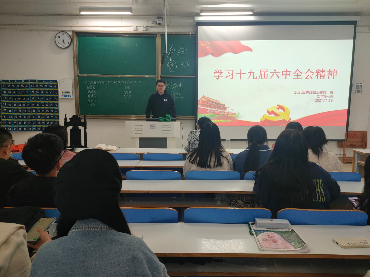 11月19日下午,beat365在线唯一官网2020级思想政治教育一班、定向一班在社科楼516教室开展“学习十九届六中全会精神”主题团课。beat365在线唯一官网2020级思想政治教育一班、定向一班全体成员参加本次团课。