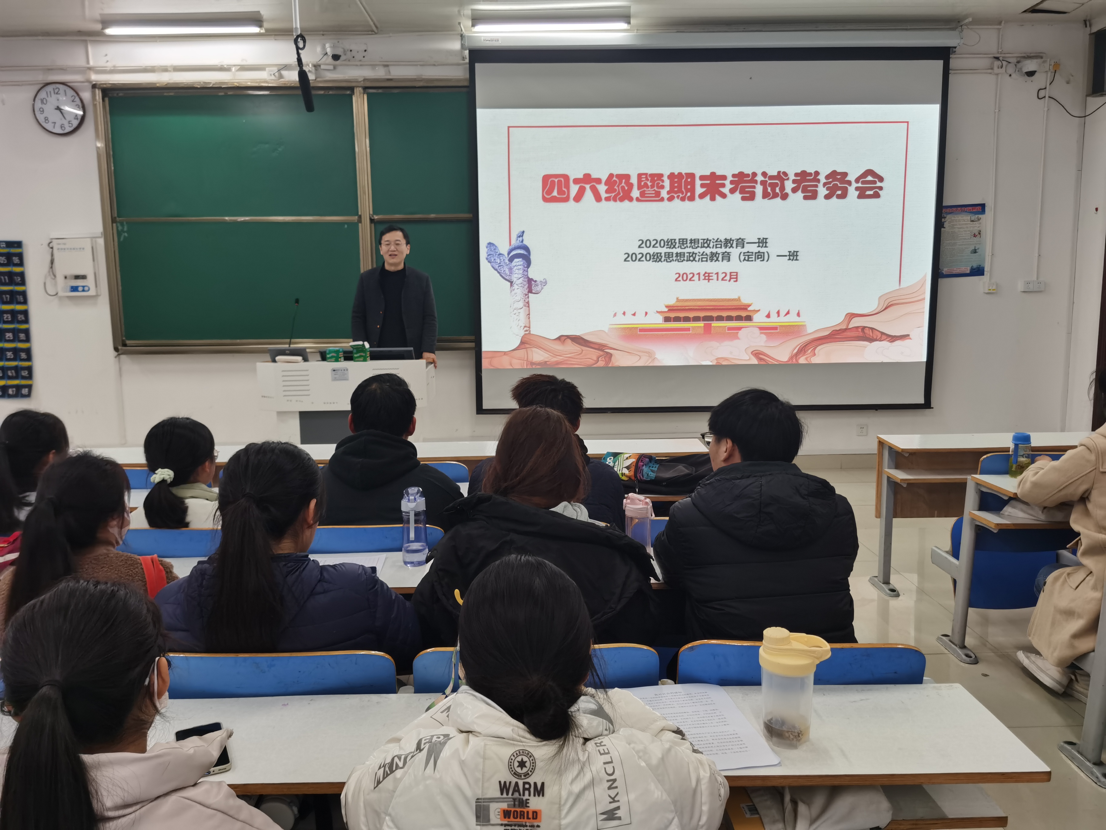 12月1日下午,beat365在线唯一官网2020级思想政治教育一班、定向一班在社科楼514教室召开四六级暨期末考试考务会。辅导员曹栋及2020级思想政治教育一班、定向一班全体同学参加了本次考务会,考务会由曹栋主持。
