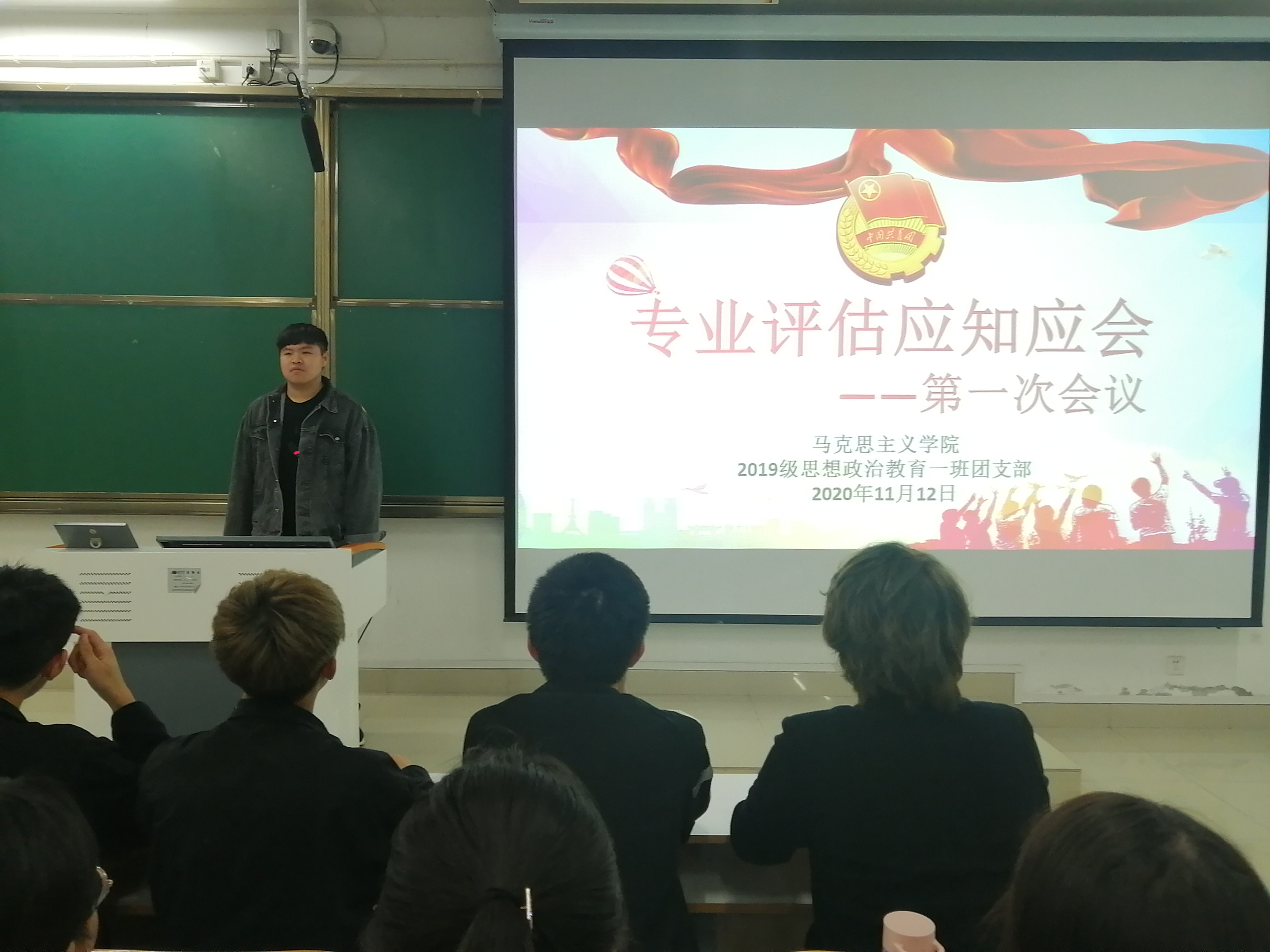 11月12日上午,beat365在线唯一官网2019级思想政治教育一班在社科楼516教室召开“专业评估应知应会”。beat365在线唯一官网2019级思想政治一班全体成员参加本次会议,会议由团支书贾子漪主持。