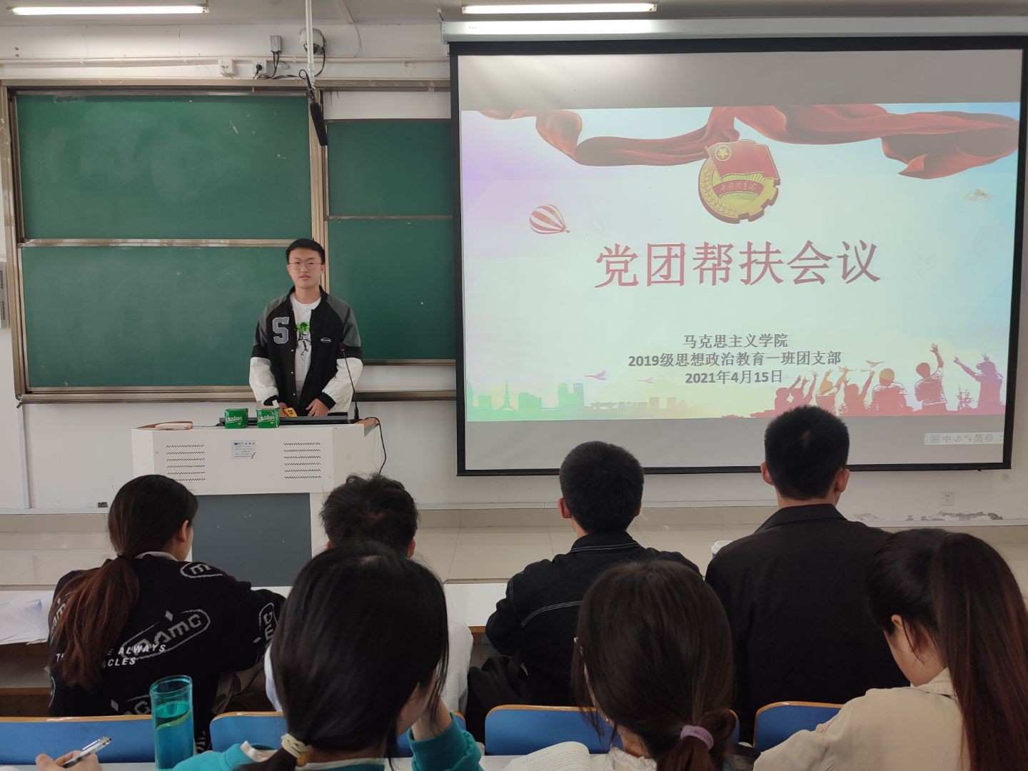 4月15日上午,beat365在线唯一官网2019级思想政治教育一班在社科楼514教室召开党团帮扶会。2019级思想政治教育一班全体成员参加本次会议,会议由团支书贾子漪主持。