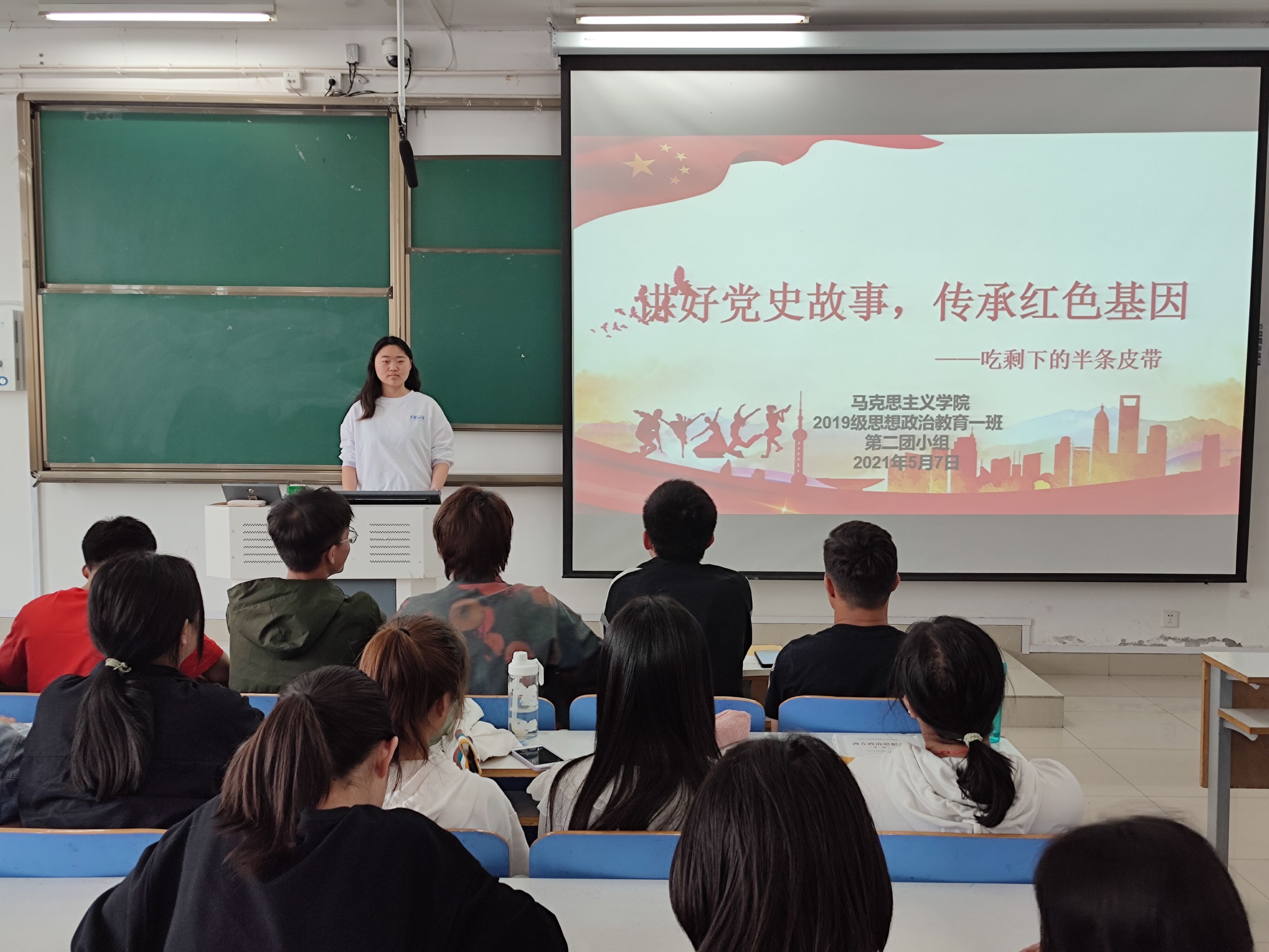 5月7日上午,beat365在线唯一官网思想政治教育一班第二团小组在社科楼516教室开展了以“讲好党史故事,传承红色基因——吃剩下的半条皮带”为主题的团小组会议。beat365在线唯一官网2019级思想政治教育第一团支部第二团小组全体成员参加本次会议。会议由第二团小组组长程子硕主持。