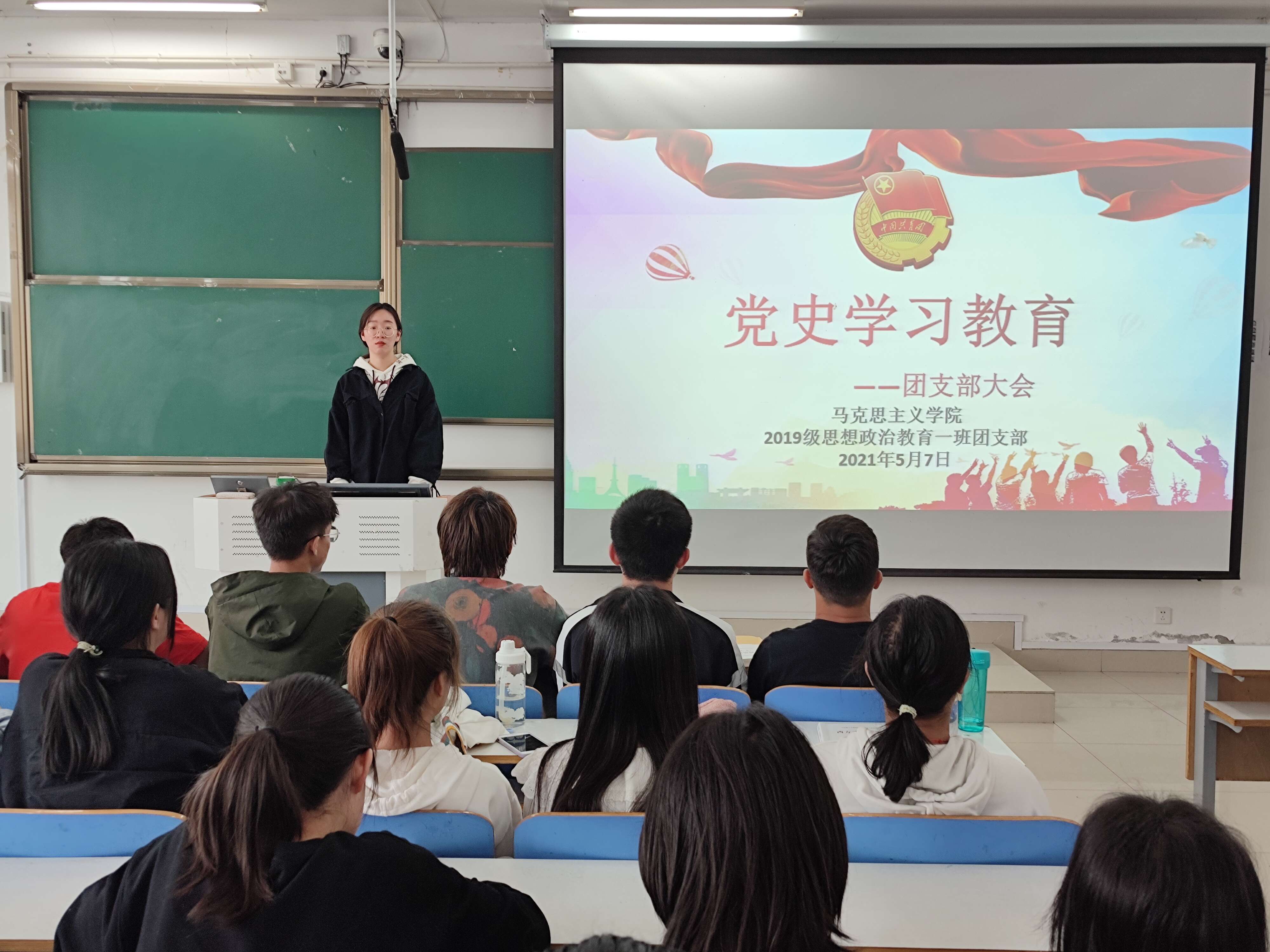 5月7日上午,beat365在线唯一官网2019级思想政治教育一班第一团支部在社科楼515教室召开主题为“党史学习教育”团支部大会。beat365在线唯一官网2019级思想政治教育一班第一团支部全体成员参加本次会议,会议由班长贾子漪主持。