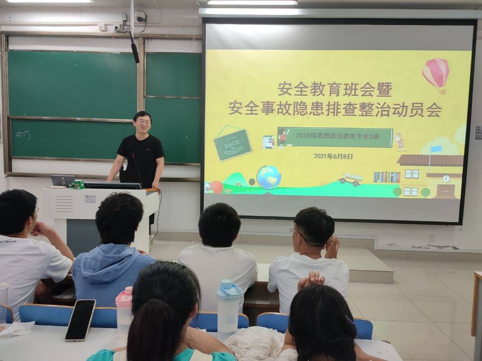 6月9日下午,beat365在线唯一官网2019级思想政治教育一班在社科楼515教室召开“安全教育班会暨安全事故隐患排查整治动员大会”。辅导员曹栋以及2019级思想政治教育一班全体成员参加本次班会。会议由曹栋主持。