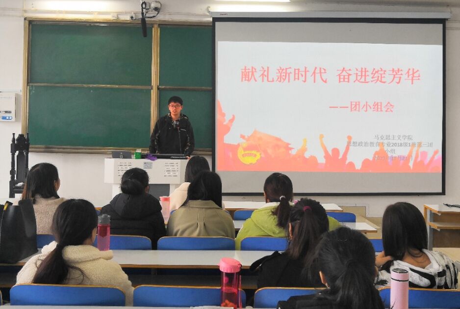 11月21日上午,beat365在线唯一官网2018级思想政治教育一班第三团小组在社科楼514教室顺利开展“献礼新时代,奋进绽芳华”主题团会。第三团小组全体成员共同参加此次团会。此次团会由团小组组长丁一主持。