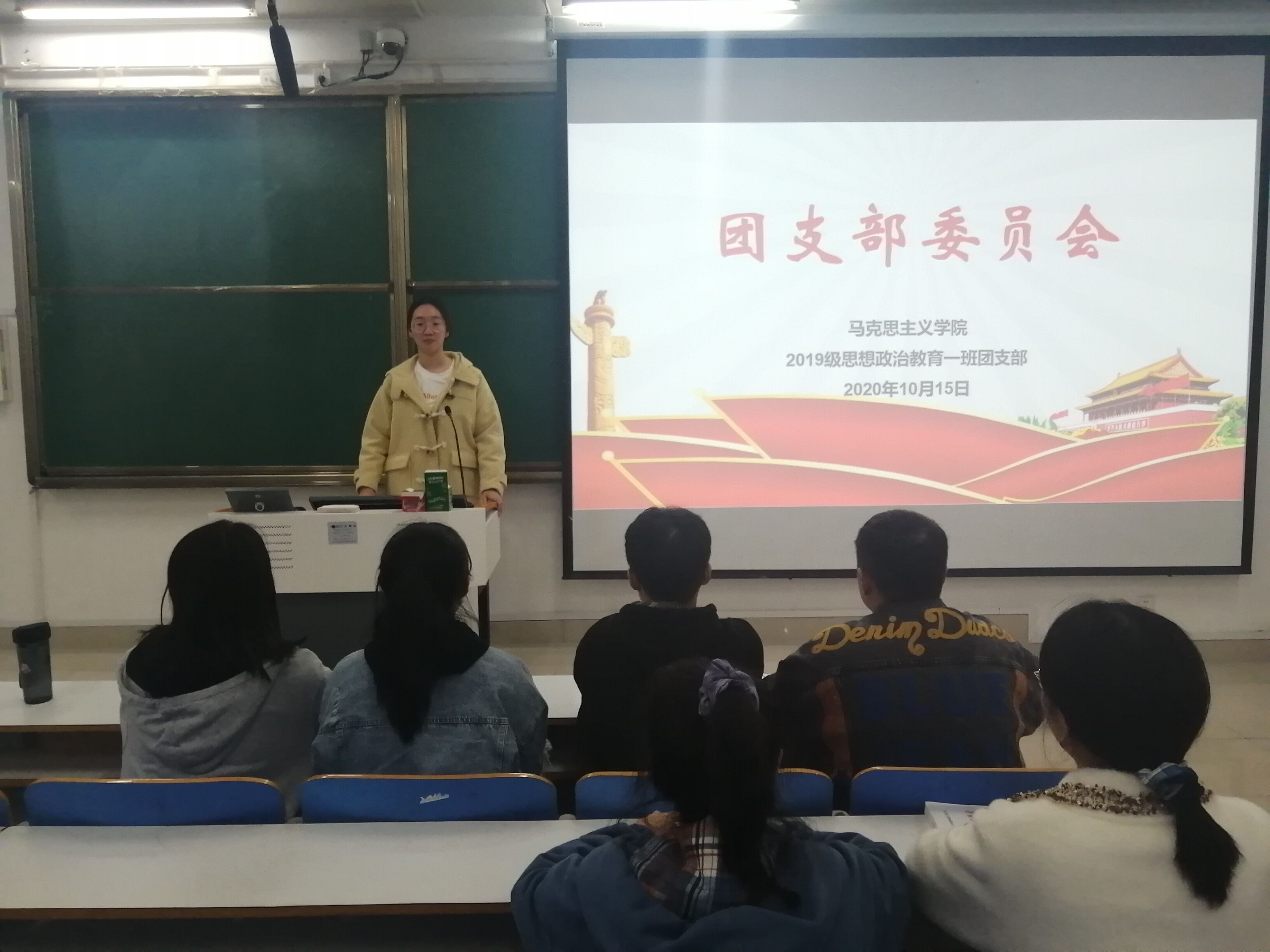 10月15日上午,beat365在线唯一官网2019级思想政治教育一班第一团支部在社科楼516教室召开团支部委员会。beat365在线唯一官网2019级思想政治教育一班团支部委员参加本次会议,本次会议由团支书贾子漪主持。