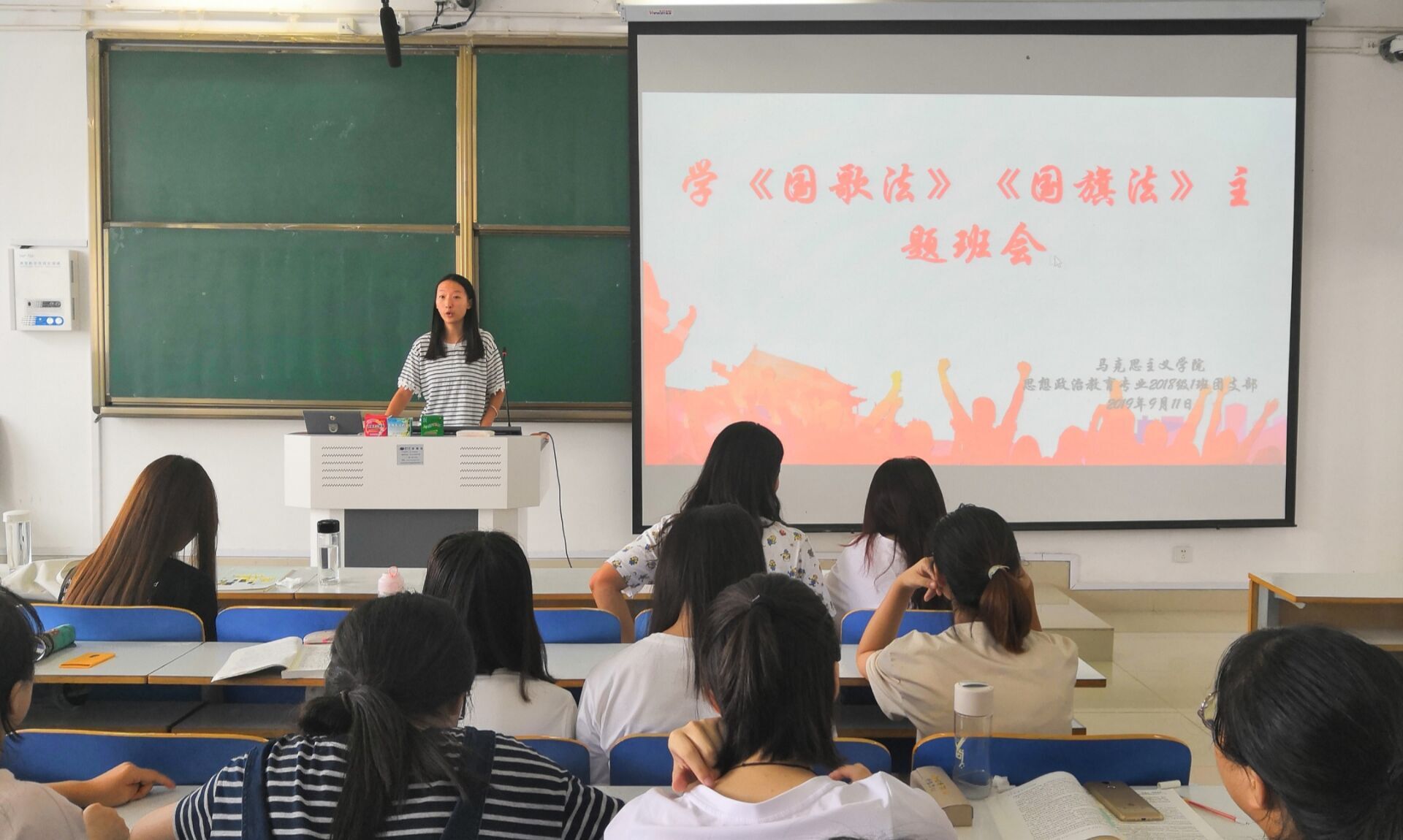 为提升同学们的爱国情怀,增强同学们的爱国意识,9月12日上午,beat365在线唯一官网2018级思想政治教育一班在社科楼514教室顺利开展“学《中华人民共和国国歌法》《中华人民共和国国旗法》”支部团员大会。2018级第一团支部全体成员共同参加此次班会。班会由团支书靳雨露主持。