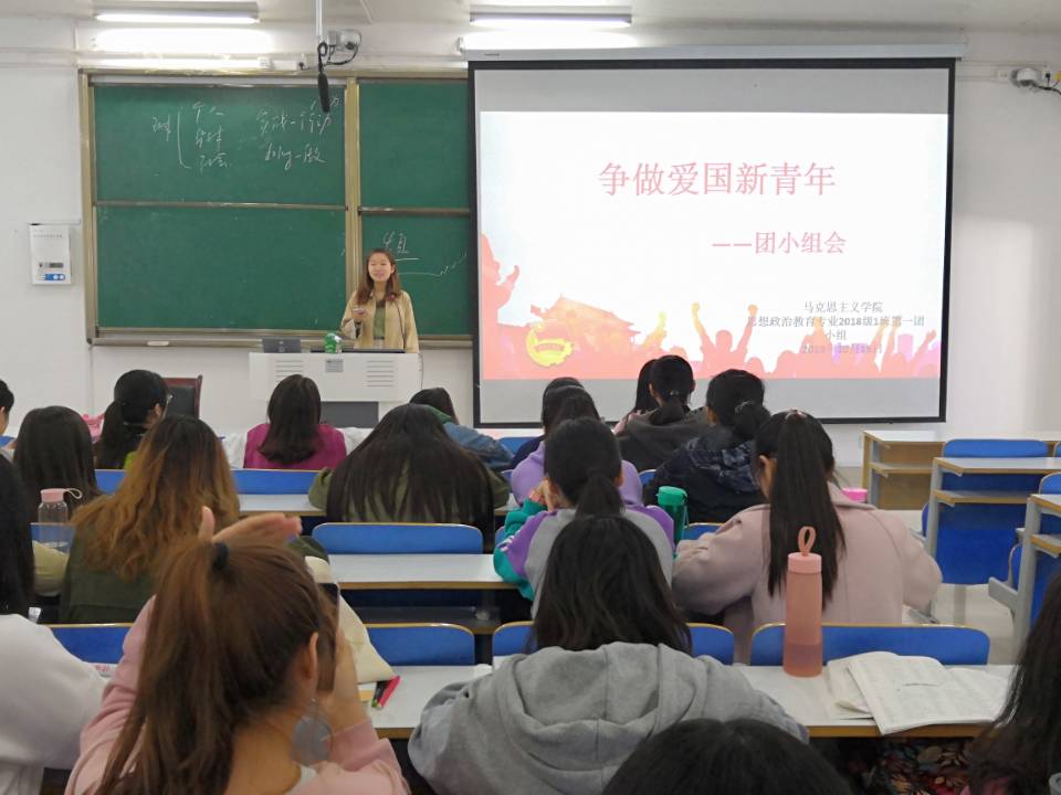 10月15日上午,beat365在线唯一官网2018级思想政治教育一班在社科楼514教室顺利开展“争做爱国新青年”主题团会。第一团小组全体成员共同参加此次会议。会议由团小组成员张玉主持。