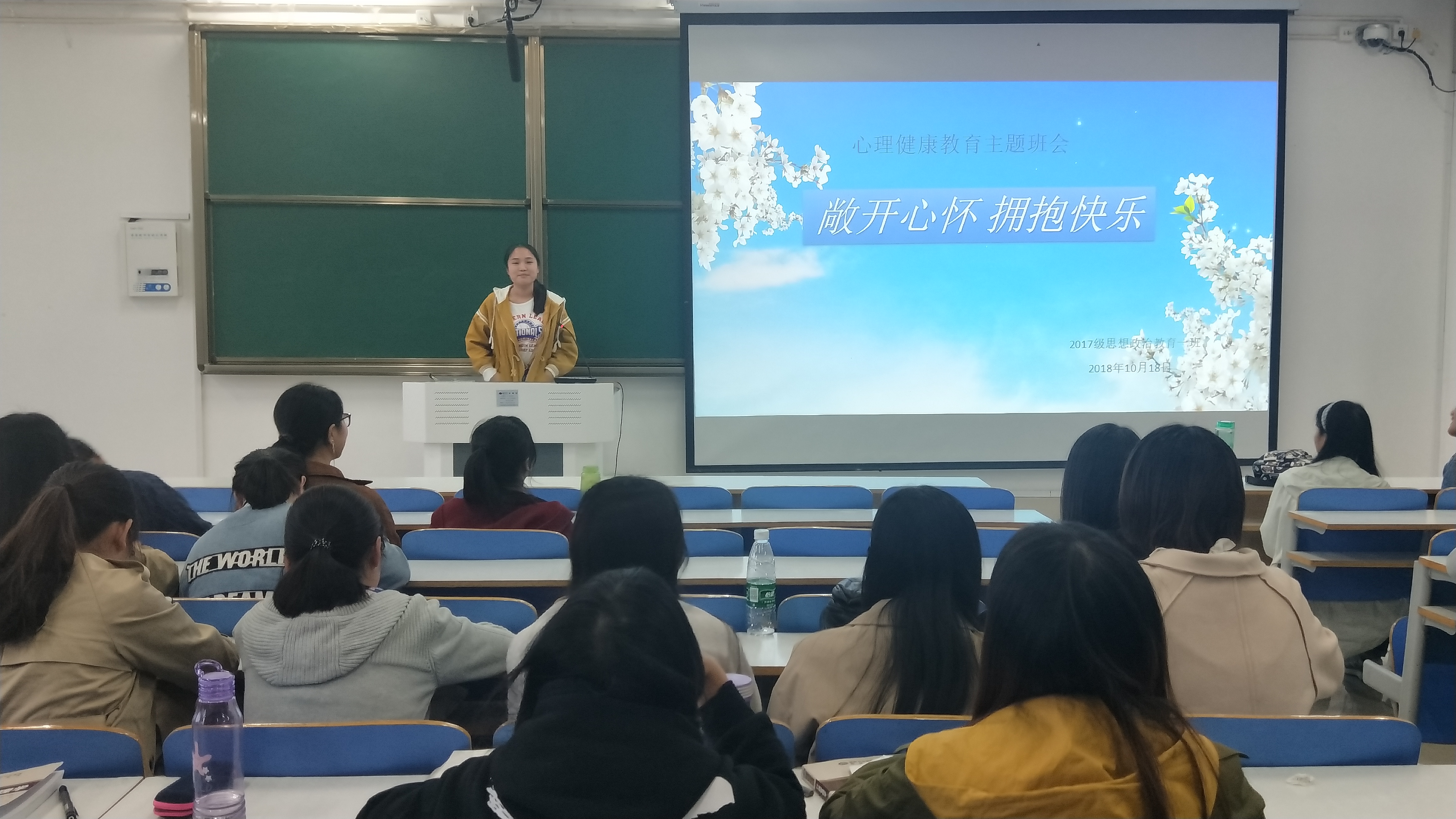 为提高我班学生心理调节能力,保持积极向上的心态,10月22日下午,beat365在线唯一官网2017级思想政治教育一班全体学生在社科楼514教室举办了“敞开心扉,拥抱快乐”主题班会,本次班会由团支书谢文静主持。