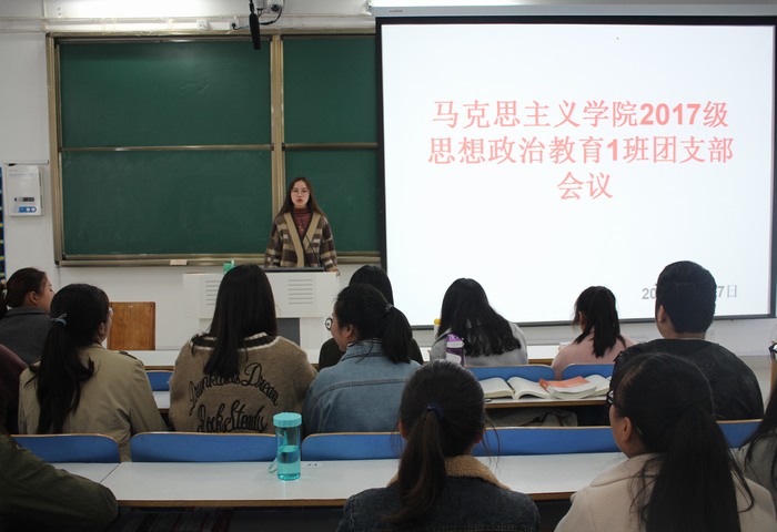 11月7日上午,2017级思想政治教育第一团支部在社科楼514教室召开支部大会。支部全体同学参加了本次会议。会议由团支书谢文静主持。