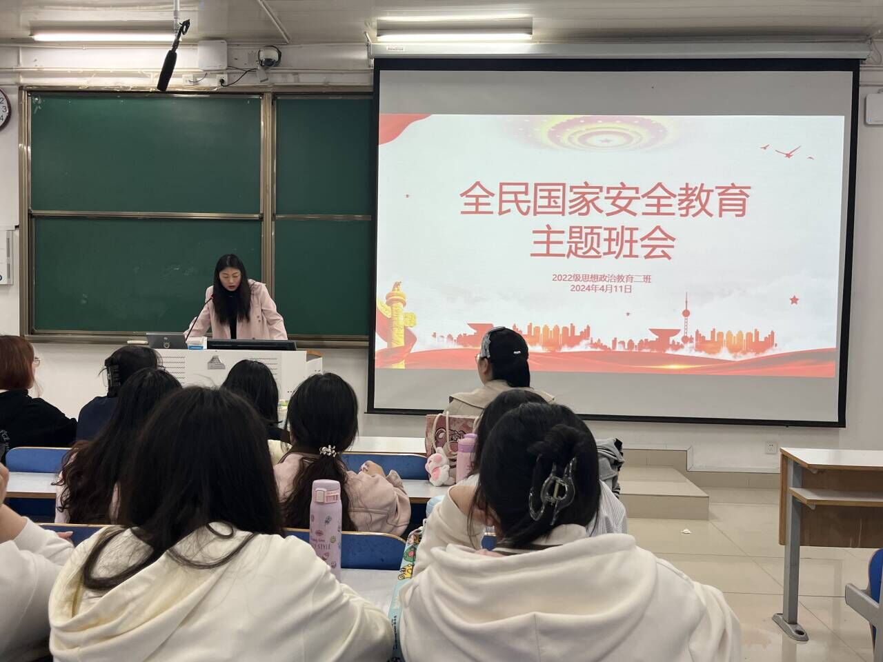 4月11日晚上,beat365在线唯一官网2022级思想政治教育二班在社科楼514教室召开国家安全教育主题班会。beat3652022级思想政治教育二班全体成员共同参与此次班会。会议由班主任杨春艳主持。
