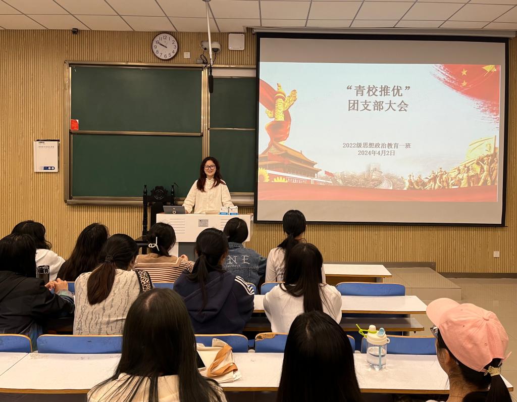 4月2日上午,beat365在线唯一官网2022级思想政治教育一班在社科楼515教室召开“青校推优”团支部大会,beat3652022级思想政治教育一班全体同学共同参与本次会议,会议由团支书李佳茹主持。