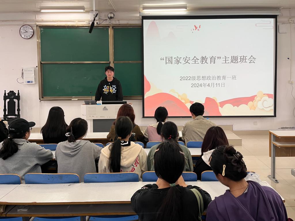 为进一步增强同学们的国家安全意识,4月11日上午,beat365在线唯一官网2022级思想政治教育一班在社科楼514教室召开“国家安全教育”主题班会,beat3652022级思想政治教育一班全体同学共同参与本次班会,班会由副班长闻炎仲主持。