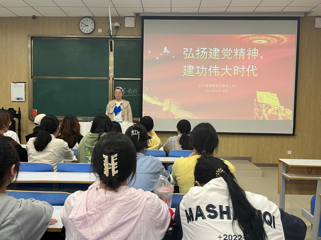 团课伊始,李佳音通过讲解、案例分析等方式,深入浅出地阐述了伟大建党精神的内涵和意义,强调了其在当代中国的现实意义和历史价值。随后,李佳音全面介绍了“为人民谋幸福,为民族谋复兴”,引导同学们深入学习红船精神、焦裕禄精神以及众多党员的不屈精神,并从青年一代的角度出发,引导同学们将榜样与自身相结合,积极向党组织靠拢。最后,李佳音对团课进行总结,她强调,理想指引人生方向, 信念决定事业成败,我们要树立远大理想,坚持正确的价值取向,以青春汗水灌溉时代芳华。