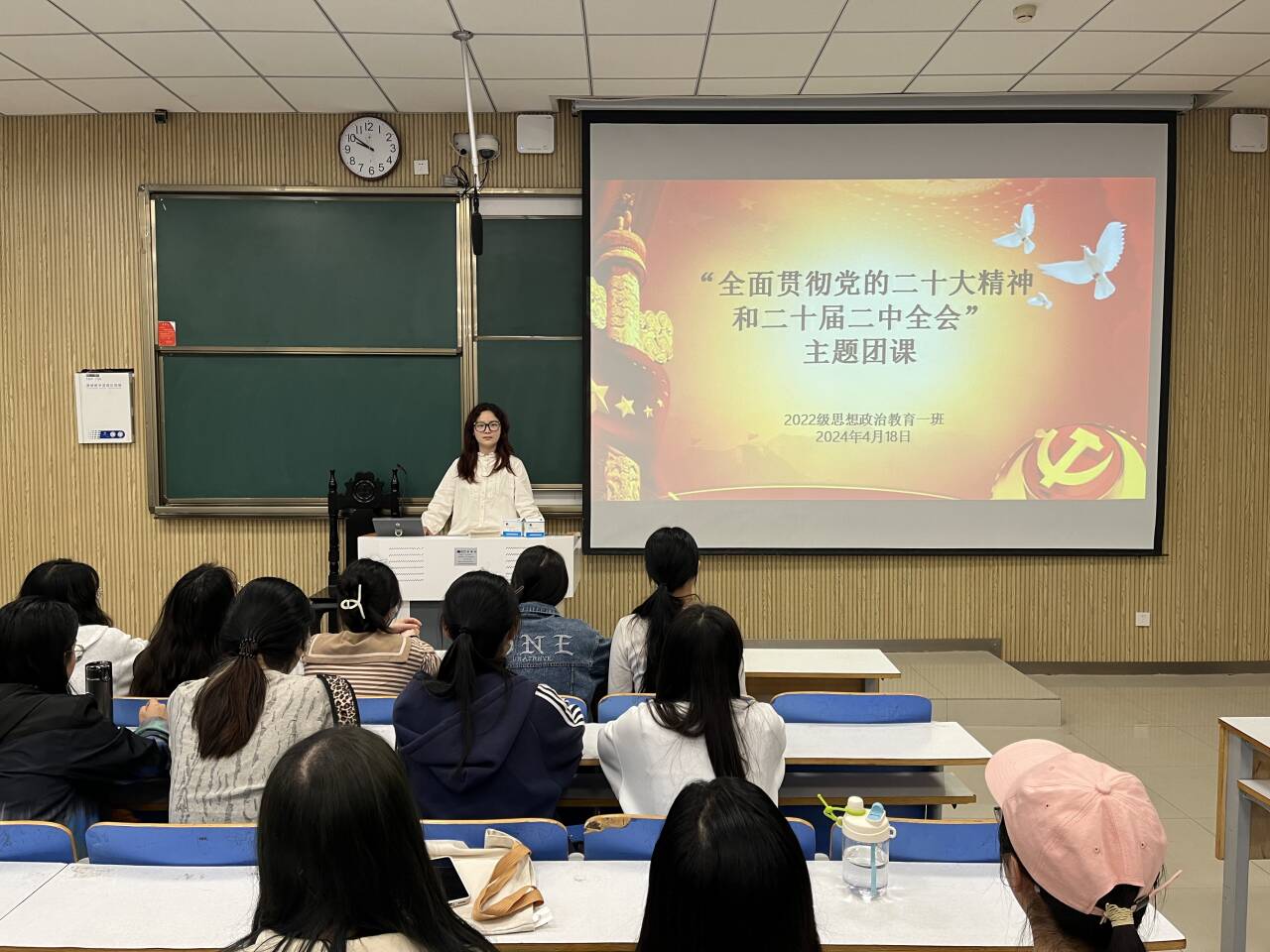 4月18日上午,beat365在线唯一官网2022级思想政治教育一班在社科楼515教室召开“全面贯彻党的二十大精神和二十届二中全会”主题团课,beat3652022级思想政治教育一班全体同学共同参与本次团课,团课由团支书李佳茹主持。
