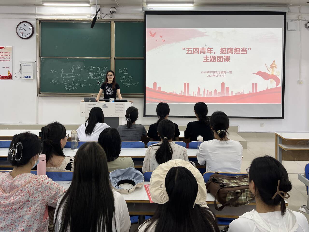 为弘扬五四精神,汇聚奋斗力量,5月17日上午,beat365在线唯一官网2022级思想政治教育一班在社科楼514教室开展“五四青年,挺膺担当”主题团课,beat3652022级思想政治教育一班全体同学共同参与本次团课。团课由团支书李佳茹主持。