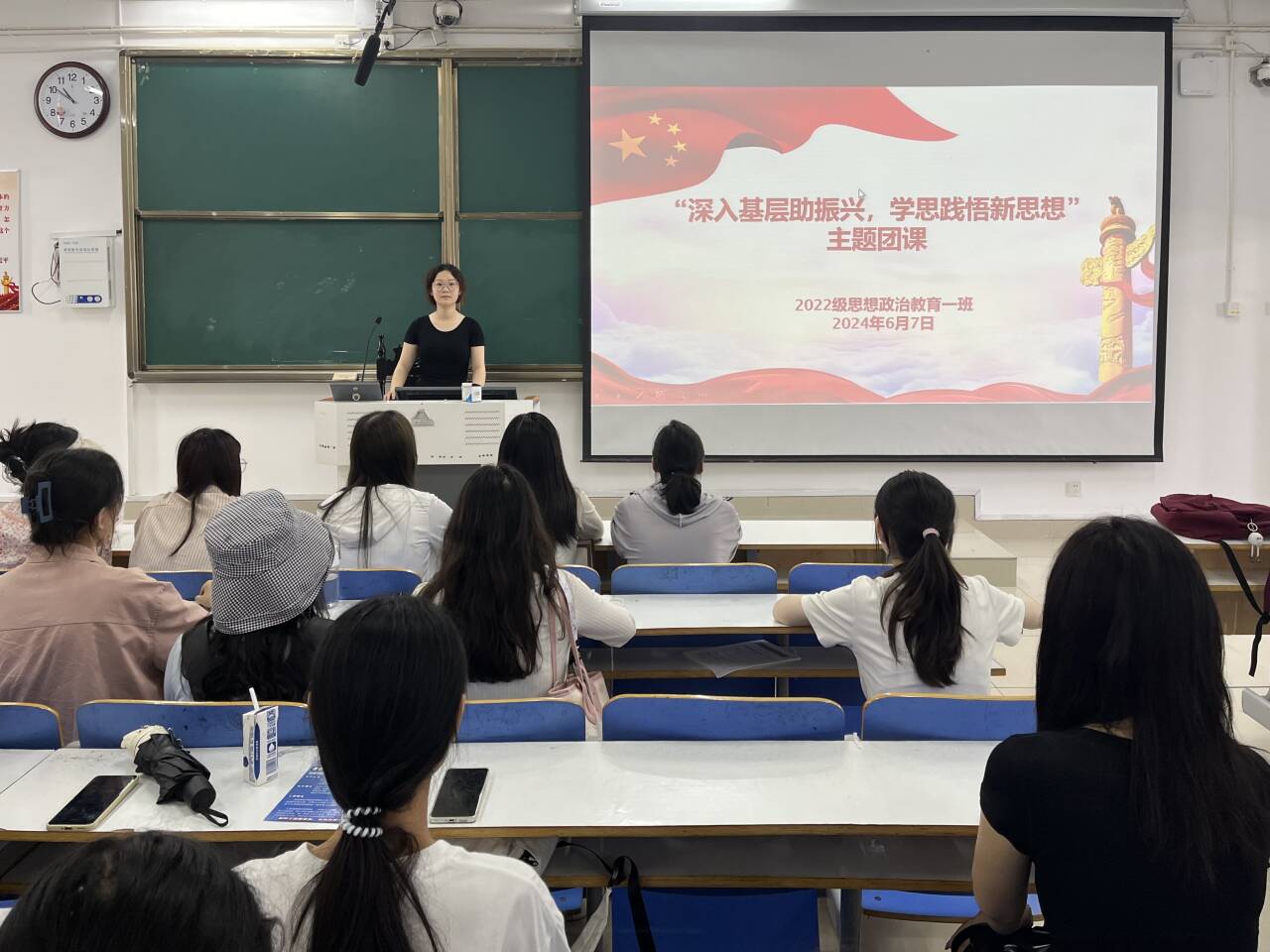 为进一步加强同学们的思想教育,6月7日上午,beat365在线唯一官网2022级思想政治教育一班在社科楼514教室开展“深入基层助振兴,学思践悟新思想”主题团课,beat3652022级思想政治教育一班全体同学共同参与本次团课,团课由团支书李佳茹主持。