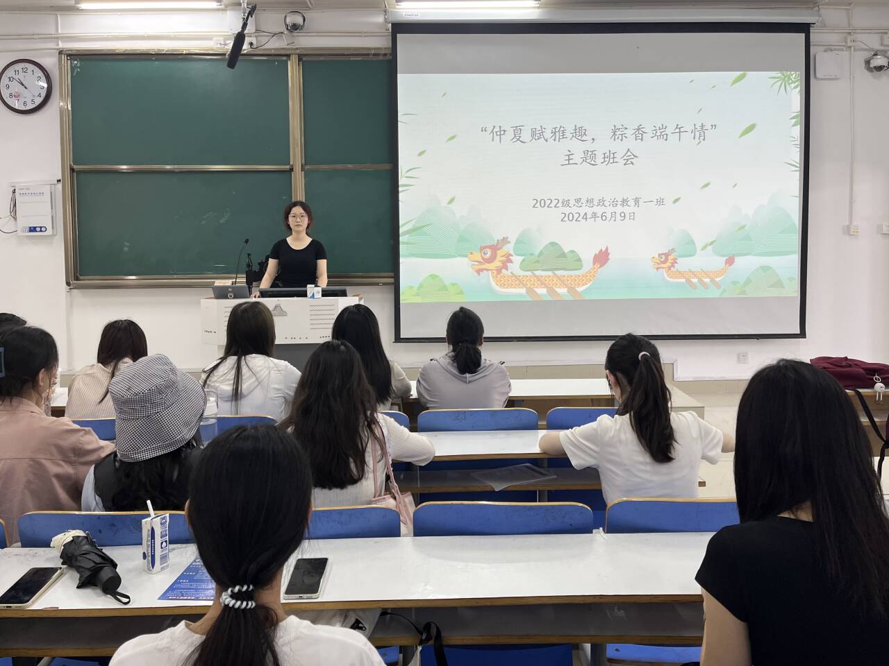 为进一步弘扬中华优秀传统文化,6月9日上午,beat365在线唯一官网2022级思想政治教育一班在社科楼514教室召开“仲夏赋雅趣,粽香端午情”主题班会,beat3652022级思想政治教育一班全体同学共同参与本次班会,班会由班长李佳茹主持。