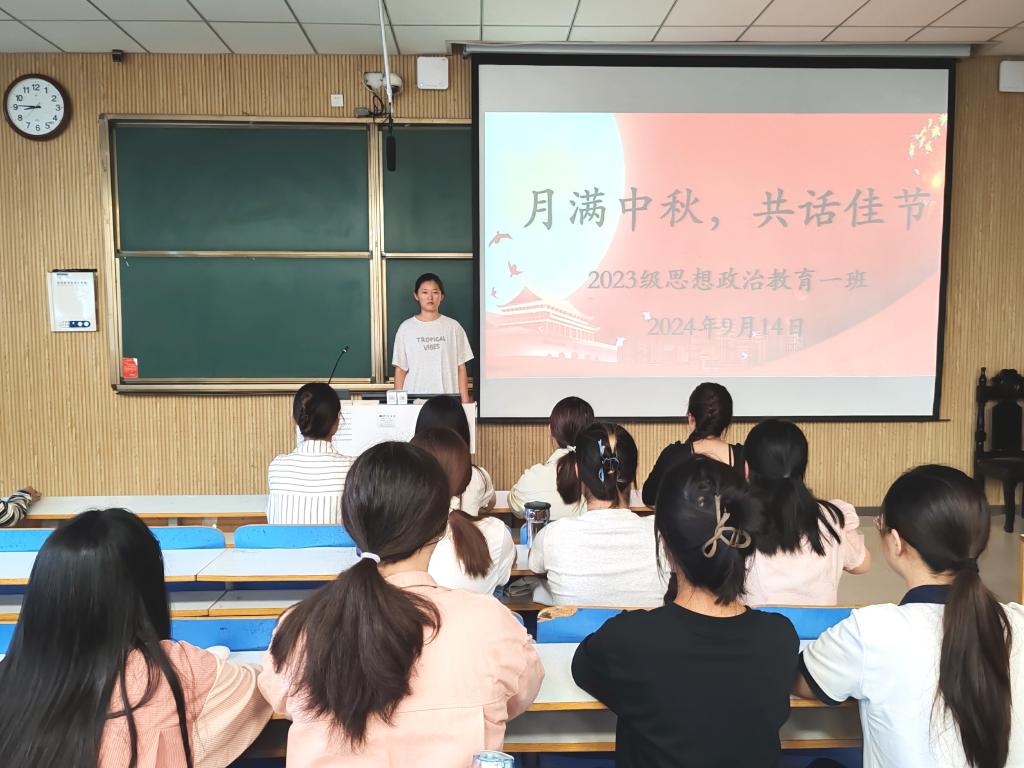 桂香万里,情暖中秋。9月14日下午,在传统节日中秋节来临之际,beat365在线唯一官网2023级思想政治教育一班在社科楼515教室召开“月满中秋,共话佳节”主题班会。2023级思想政治教育一班全体同学参与本次班会,班会由班长张卓主持。
