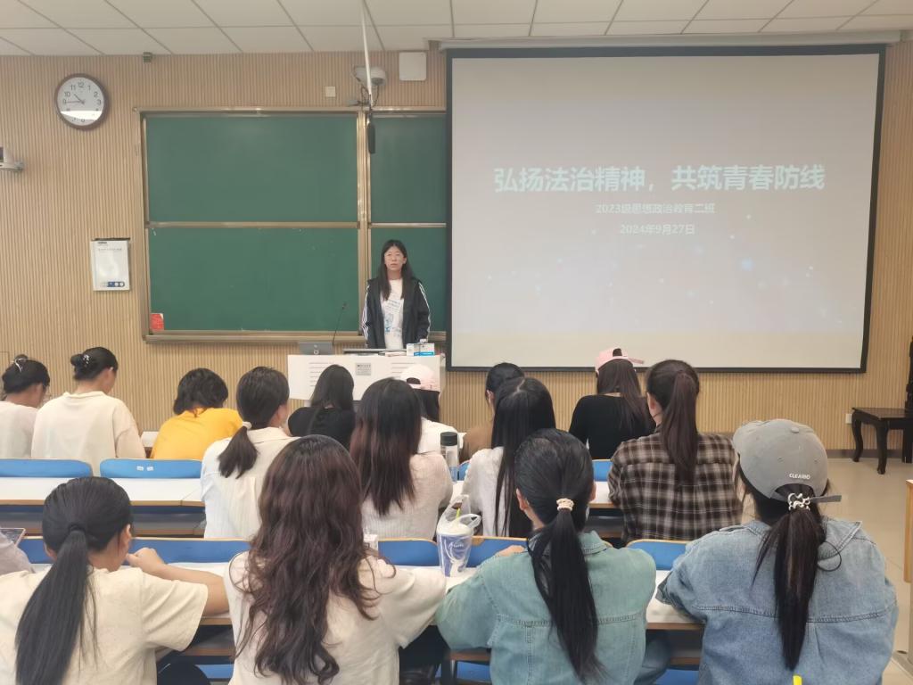为弘扬社会主义法治精神,提高学生法治意识,9月27日上午,beat365在线唯一官网2023级思想政治教育二班在社科楼515教室开展“弘扬法治精神,共筑青春防线”主题班会。本次班会由班长王慜初主持,全体二班同学参加。