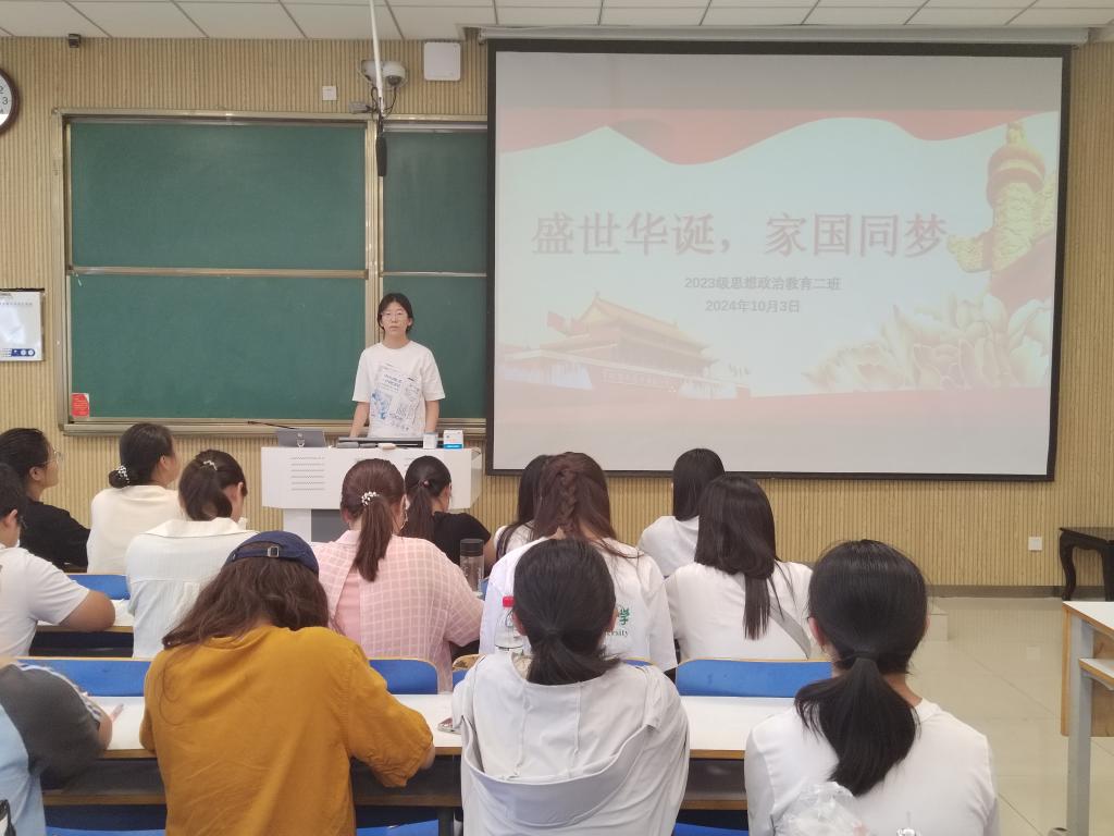 为在班级内厚植爱国情怀,培育民族自豪感,10月3日上午,beat365在线唯一官网2023级思想政治教育二班在社科楼515教室召开“盛世华诞,家国同梦”主题班会。本次班会由班长王慜初主持,全体二班同学参加。