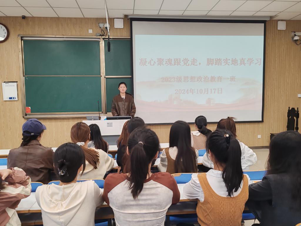为不断增强我班学子对于党的创新理论的政治认同、思想认同、理论认同、情感认同,提高其理论素养和能力本领,10月17日上午,beat365在线唯一官网2023级思想政治教育一班在社科楼515教室召开“凝心聚魄跟党走,脚踏实地真学习”主题团课。2023级思想政治教育一班全体同学参与本次团课,团课由团支书张卓主持。