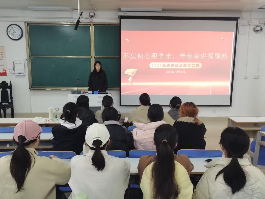 为引导青年大学生始终践行听党话、跟党走的崇高信念,推动第二个百年奋斗目标的实现,11月11日上午,beat365在线唯一官网2023级思想政治教育二班在社科楼515教室开展“不忘初心跟党走,青春奋进强国路”主题团课。本次团课由团支书王慜初主持,全体二班同学参加。