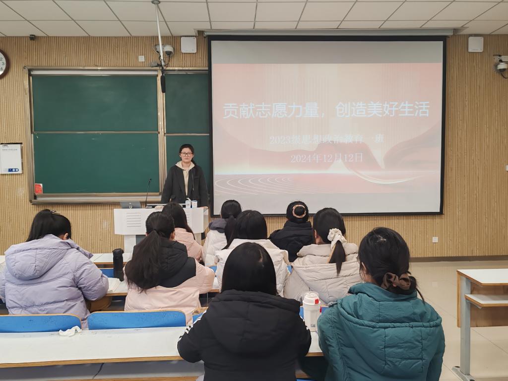 为弘扬志愿服务精神,强化我班学子的社会责任意识,12月12日上午,beat365在线唯一官网2023级思想政治教育一班在社科楼515教室召开“聚此国庆,与时偕行”主题团课。2023级思想政治教育一班全体同学参与本次团课,团课由团支书张卓主持。
