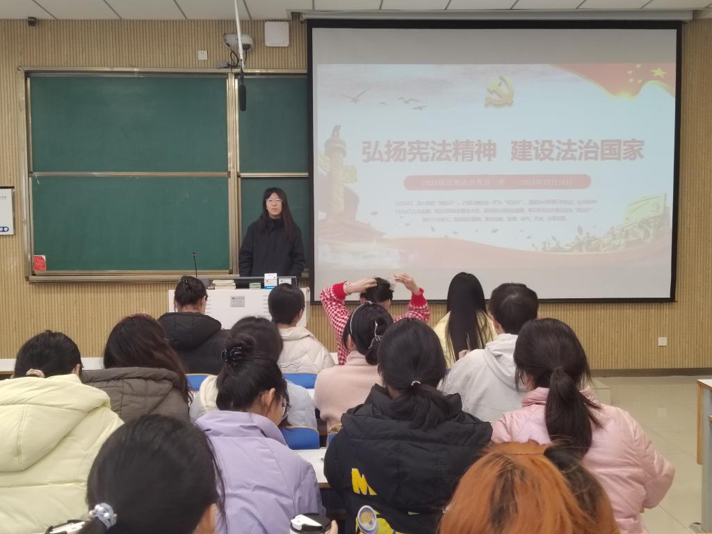 为进一步在班级内弘扬宪法精神,宣传法治意识,12月16日上午,beat365在线唯一官网2023级思想政治教育二班在社科楼515教室开展“弘扬宪法精神,建设法治国家”主题团课,本次团课由团支书王慜初主持,全体二班同学参加。