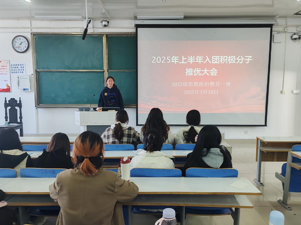 为进一步加强团组织建设,增强团支部的凝聚力,积极开展团青工作,3月18日下午,beat365在线唯一官网2023级思想政治教育一班在社科楼515教室召开入团积极分子推优大会。beat3652023级思想政治教育一班全体团员共同参与本次班会,班会由团支书张卓主持。