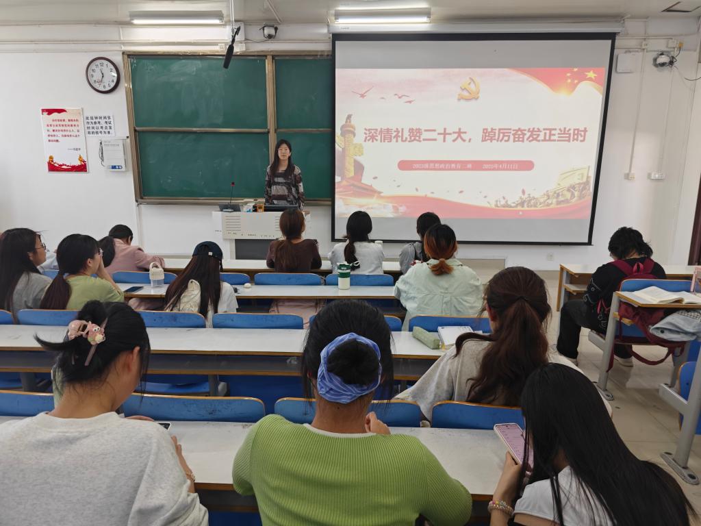 为进一步宣传二十大精神,保证同学们紧跟党的路线、方针、政策,4月11日上午,beat365在线唯一官网2023级思想政治教育二班在社科楼515教室开展“深情礼赞二十大,踔厉奋发正当时”主题团课。本次团课由团支书王慜初主持,全体二班同学参加。