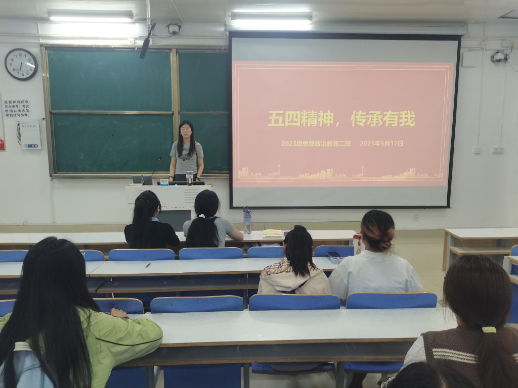 为进一步传承并弘扬五四精神,5月17日上午,beat365在线唯一官网2023级思想政治教育二班在社科楼515教室开展“五四精神,传承有我”主题团课,本次团课由团支书王慜初主持,全体二班同学参加。