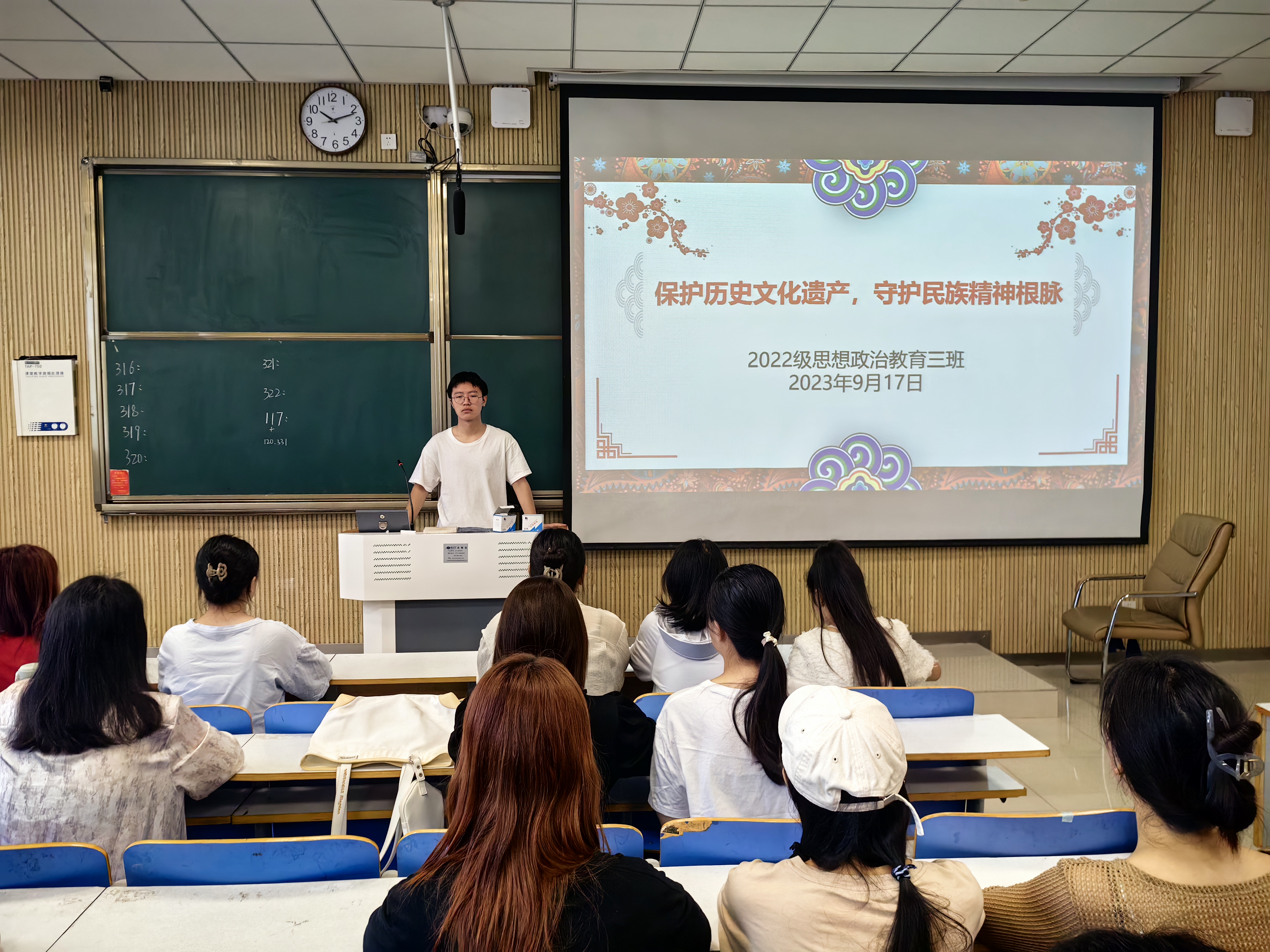 9月17日上午,beat365在线唯一官网2022级思想政治教育三班在社科楼515教室召开“保护历史文化遗产,守护民族精神根脉”主题团课。beat3652022级思想政治教育三班全体成员共同参加此次团课。团课由团支书余浩洋主持。