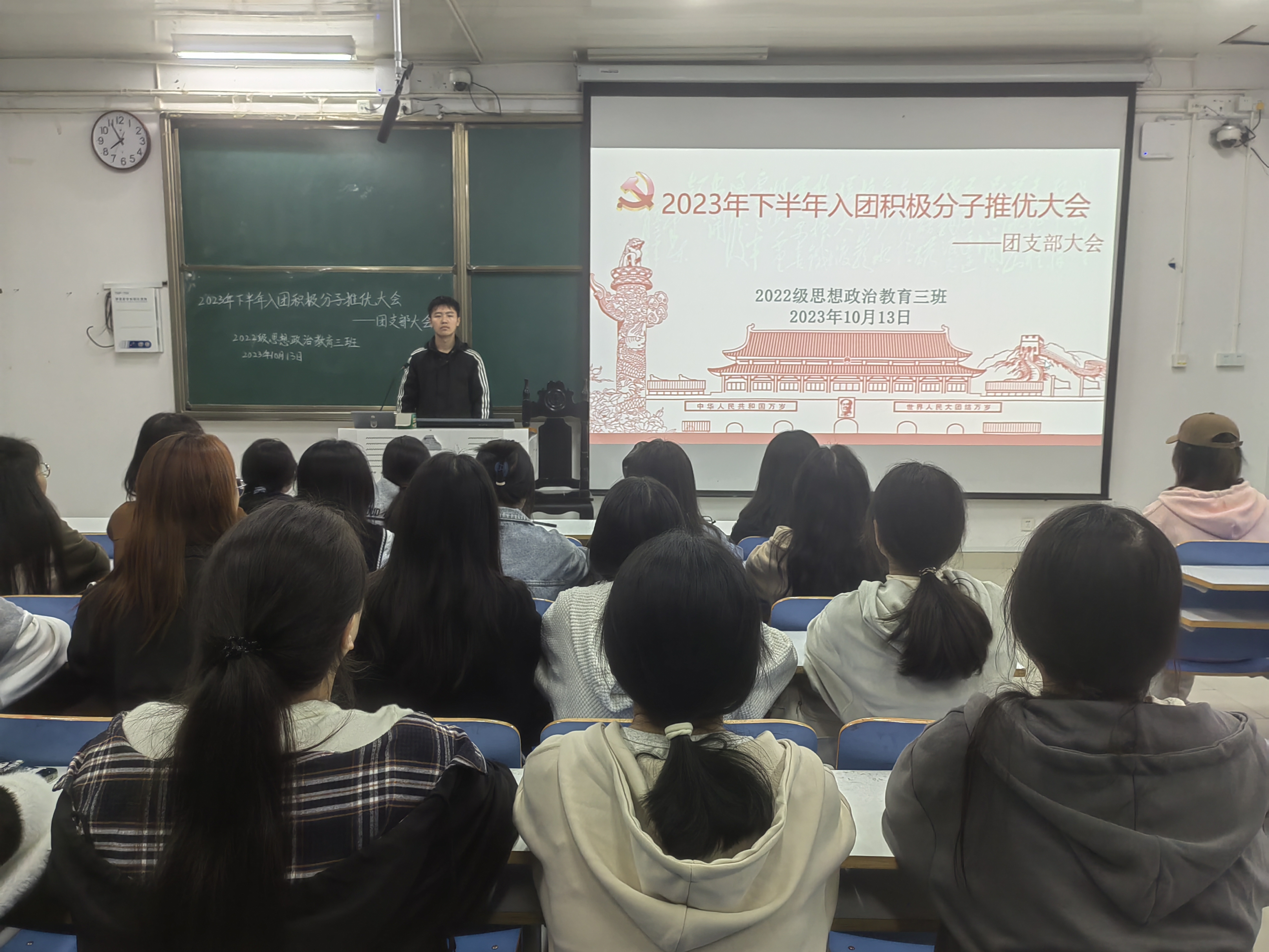 10月13日上午,beat365在线唯一官网2022级思想政治教育三班在514教室开展入团积极分子推优大会。beat3652022级思想政治教育三班全体团员共同参与此次推优大会。大会由团支书余浩洋主持。