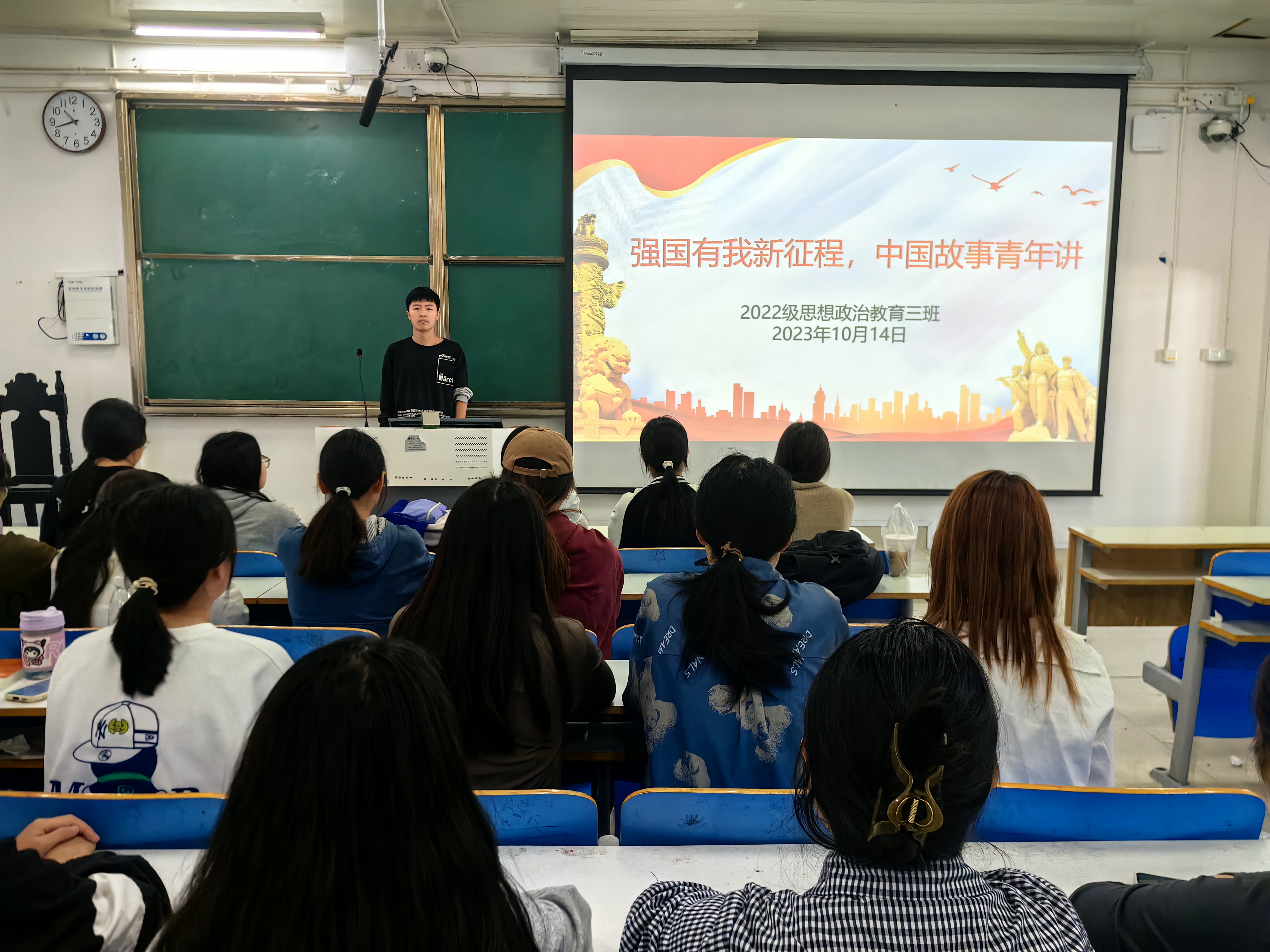 10月14日上午,beat365在线唯一官网2022级思想政治教育三班在社科楼514教室召开“强国有我新征程,中国故事青年讲”主题团课。beat3652022级思想政治教育三班全体成员共同参加此次团课,团课由团支书余浩洋主持。