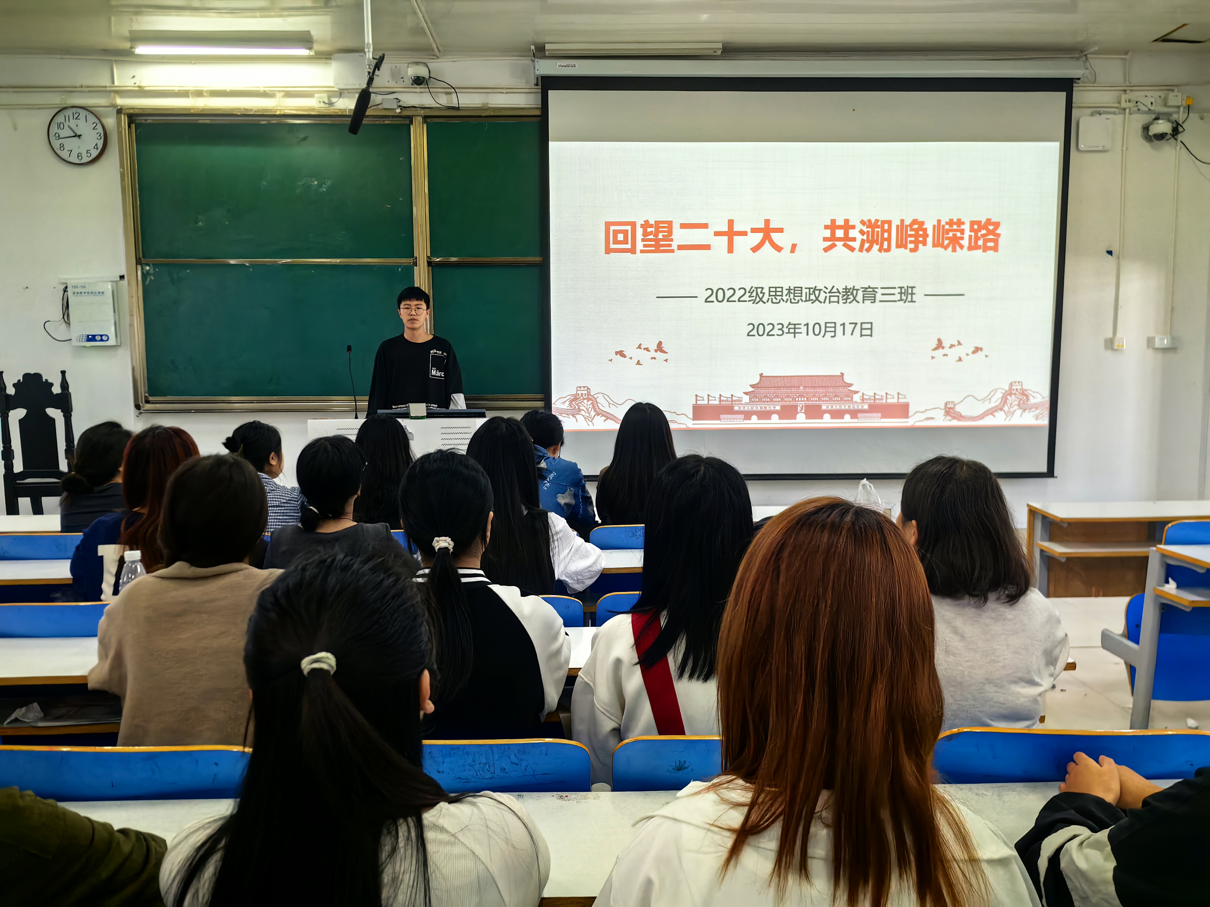 10月17日下午,beat365在线唯一官网2022级思想政治教育三班在社科楼515教室召开“回望二十大,共溯峥嵘路”主题团课。beat3652022级思想政治教育三班全体成员共同参加本次团课,团课由团支书余浩洋主持。