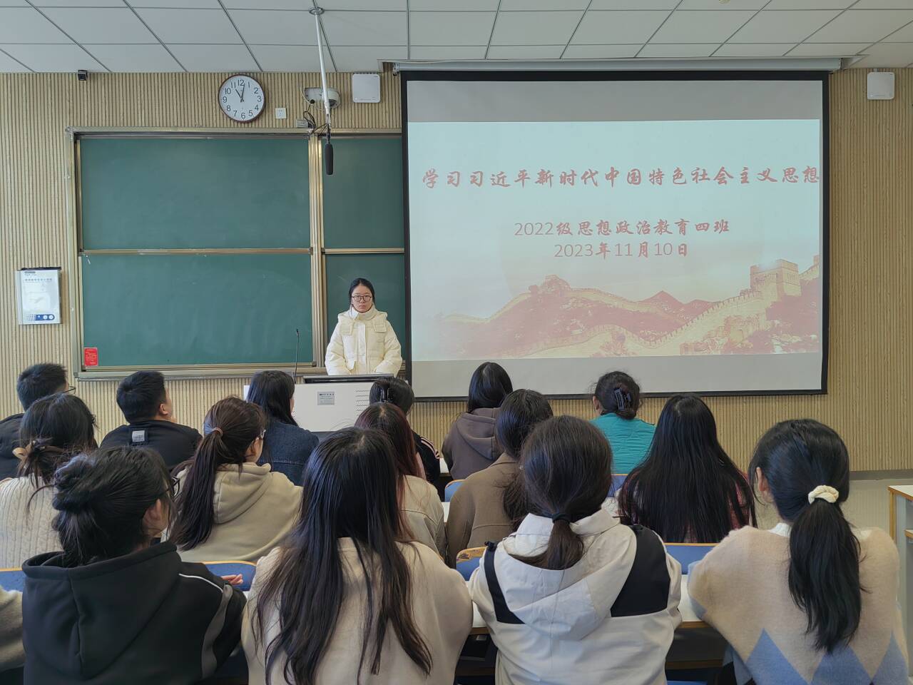 11月10日上午,beat365在线唯一官网2022级思想政治教育四班在社科楼515教室召开“深入学习贯彻习近平新时代中国特色社会主义思想”主题团课。beat3652022级思想政治教育四班全体同学参与本次班会。本次团课由团支书牛志杰主持。