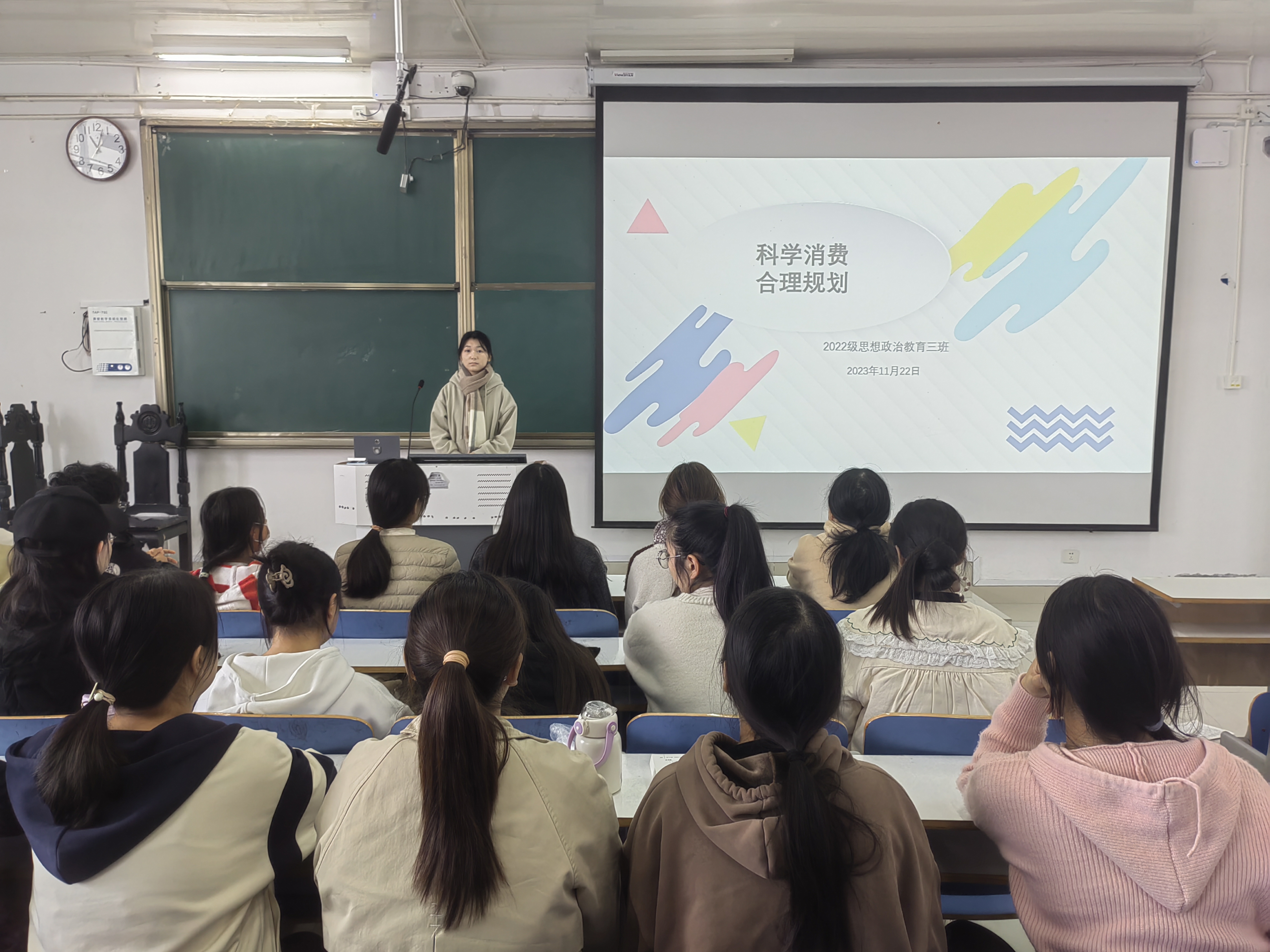 为引导学生树立科学的消费观,11月22日上午,beat365在线唯一官网2022级思想政治教育三班在社科楼514教室召开“科学消费,合理规划”主题班会。beat3652022级思想政治教育三班全体成员共同参加本次班会,班会由心理委员张韶涵主持。