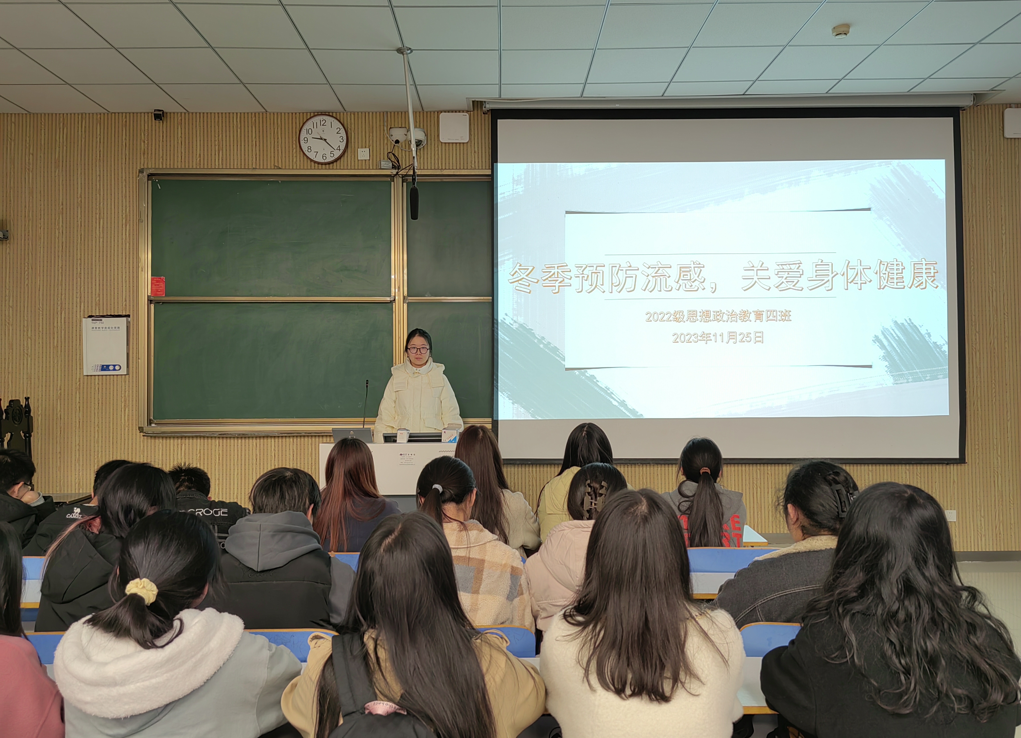 为普及冬季流感健康知识,提高同学们对于疾病的防治意识和能力,11月25日下午,beat365在线唯一官网2022级思想政治教育四班在社科楼515教室召开“冬季预防流感,关爱身体健康”主题班会。beat3652022级思想政治教育四班全体同学参与本次班会。本次班会由班长牛志杰主持。