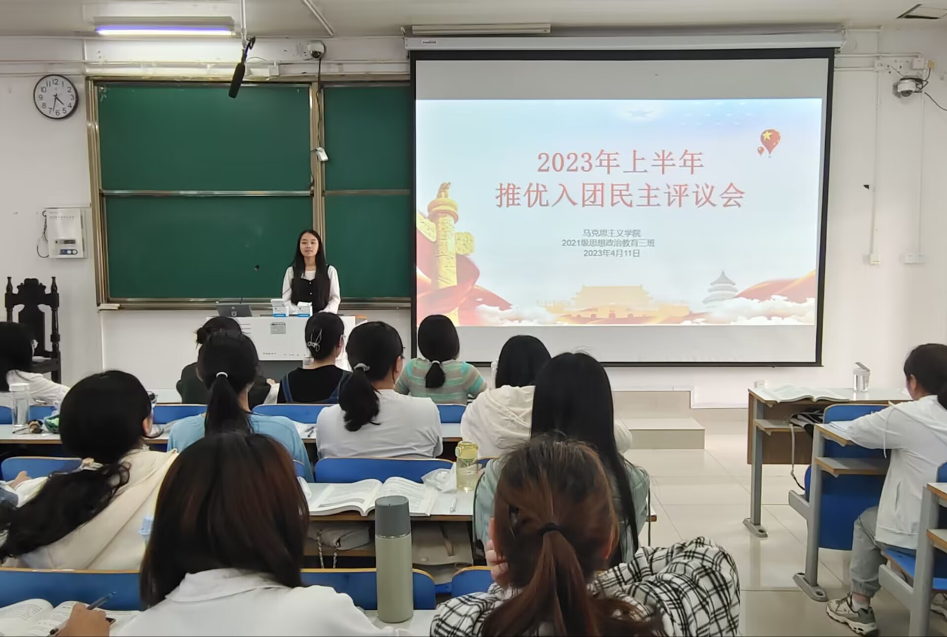 4月11日下午,beat365在线唯一官网2021级思想政治教育三班在社科楼514教室举办2023年上半年推优入团民主评议会。beat365在线唯一官网2021级思想政治教育三班全体团员参与此次会议。会议由团支书王岚霄主持。